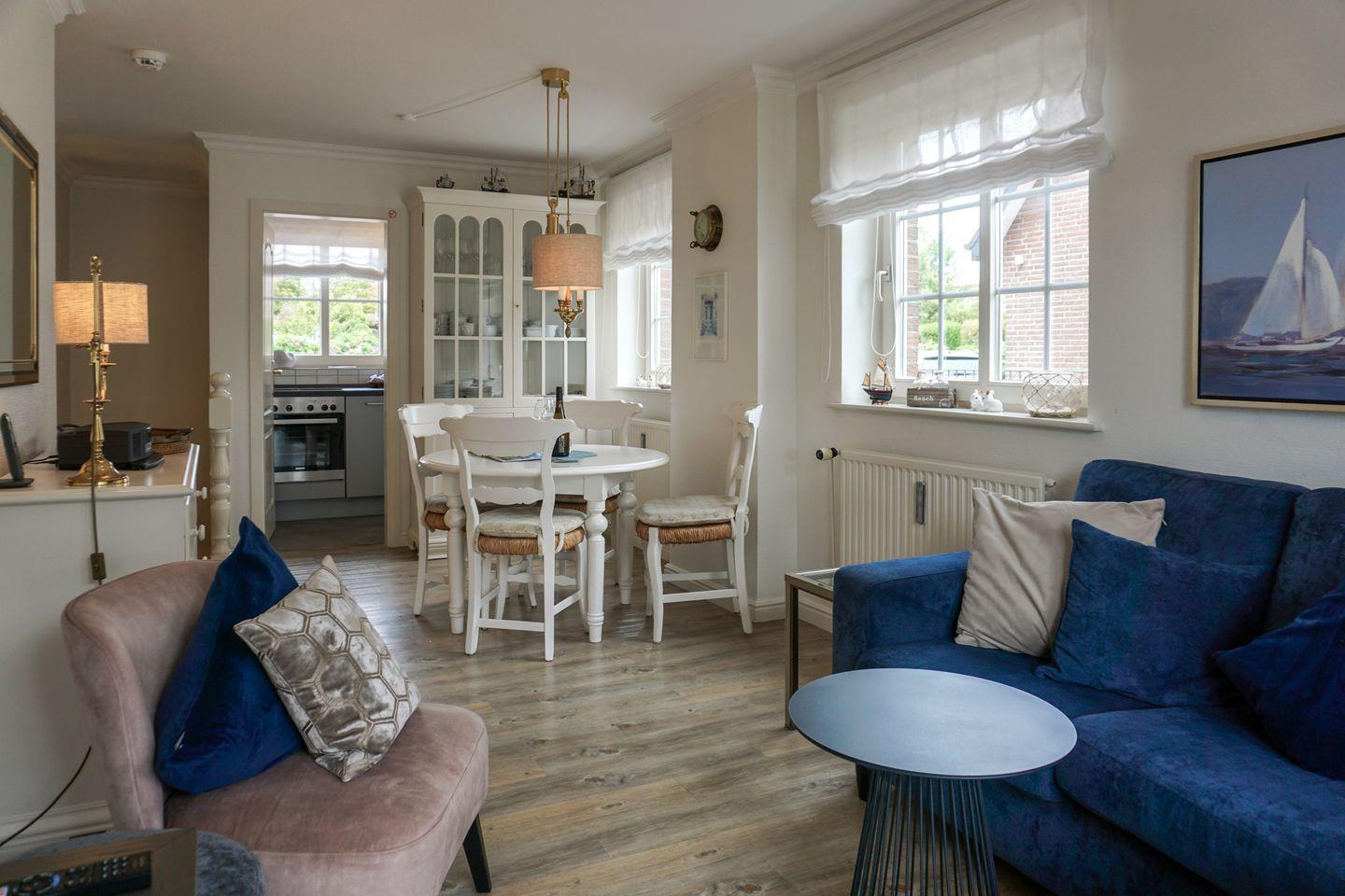 Der gemütliche Wohnraum des Domizils bietet Ihnen eine gemütliche Couchecke, einen Essbereich für bis zu vier Personen. Die Küche finden Sie separat, aber direkt angeschlossen an den Essbereich. Vom Wohnbereich aus betreten Sie Ihre wunderschöne, möblierte Süd-Terrasse mit Blick in den idyllischen Garten. Die Sonne können Sie hier bis in die Abendstunden ausgiebig genießen.