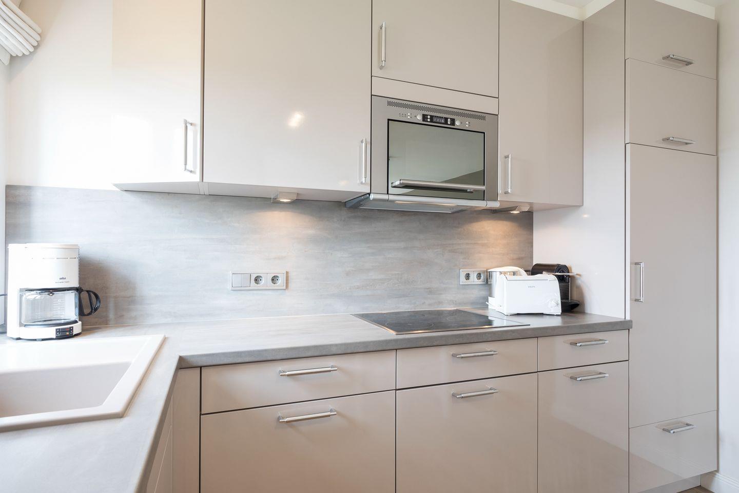 Induktionsherd, Mikrowelle-Backofen-Kombination, Geschirrspülmaschine, Kaffeemaschine sowie NESPRESSO-Maschine stehen Ihnen zur Verfügung.
