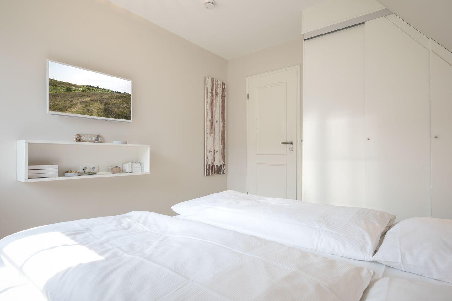 Viel Platz im großzügigen Kleiderschrank und ein Flat-TV sind selbstverständlich.