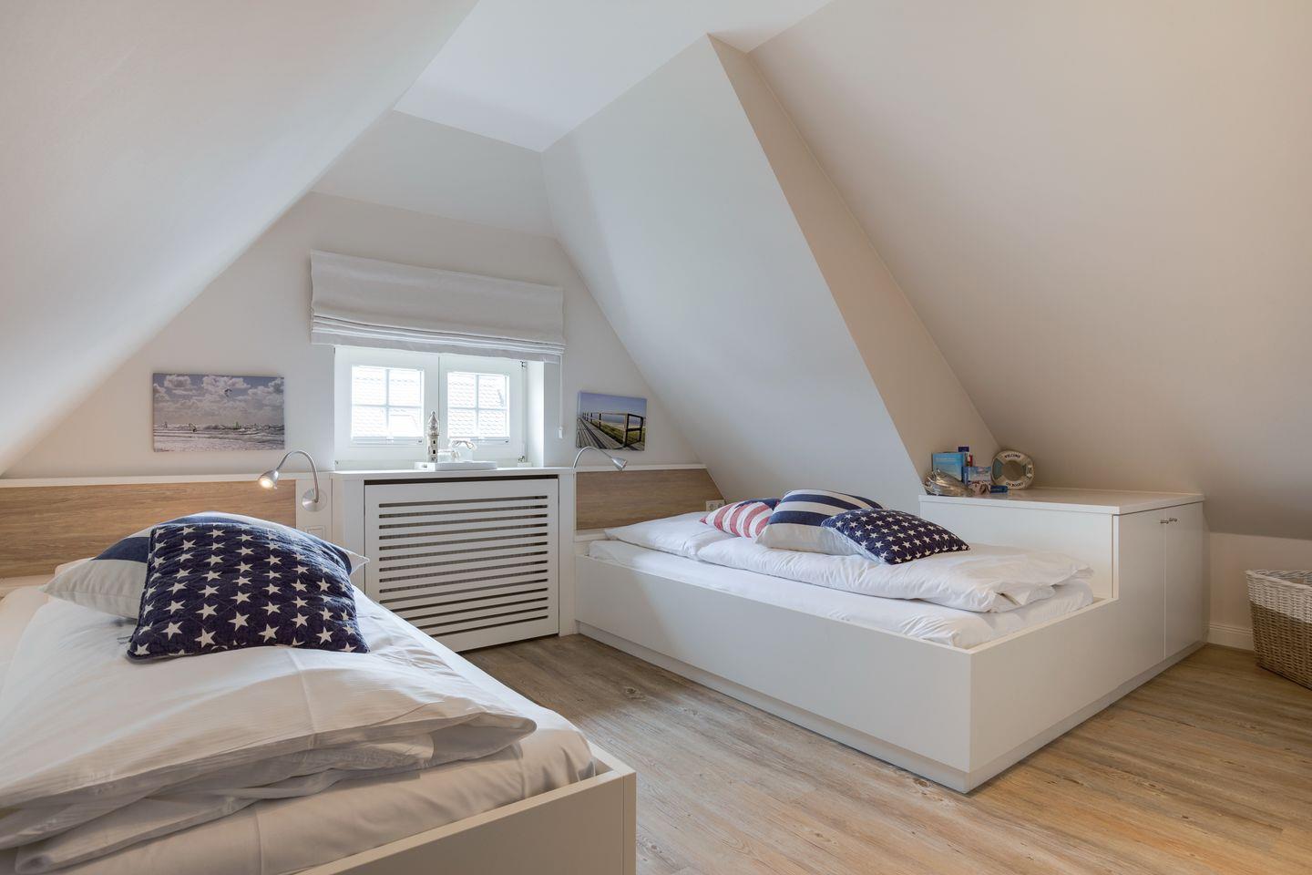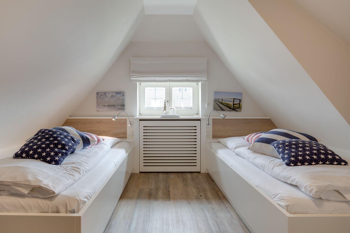 Im kuscheligen Zimmer mit maritimen Flair finden Sie zwei eingebaute Einzelbetten (90 x 200 cm)