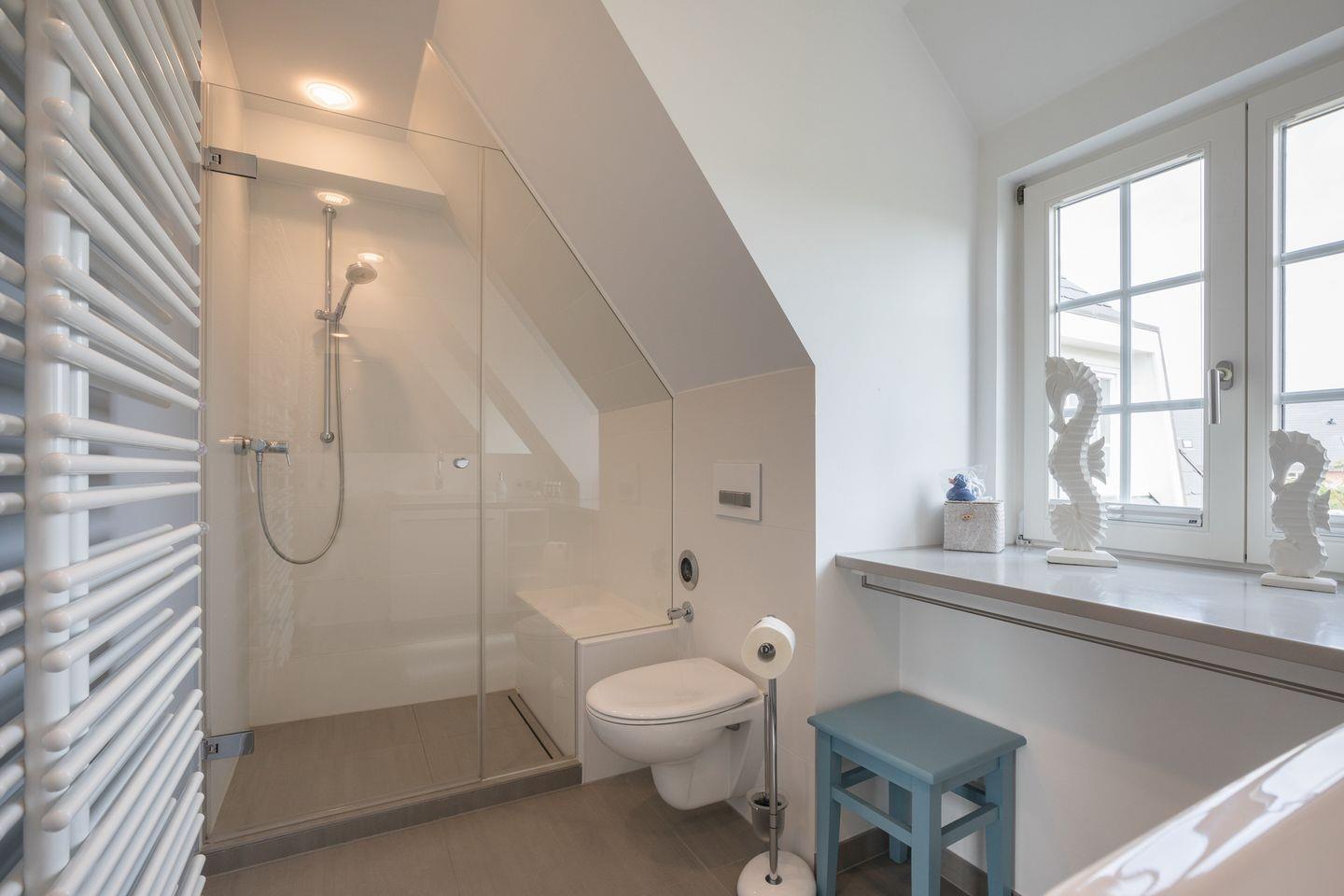 Die großzügige Glasdusche und der beheizbare Handtuchhalter werden Sie begeistern sowie das eingebaute Radio und die Fußbodenheizung.