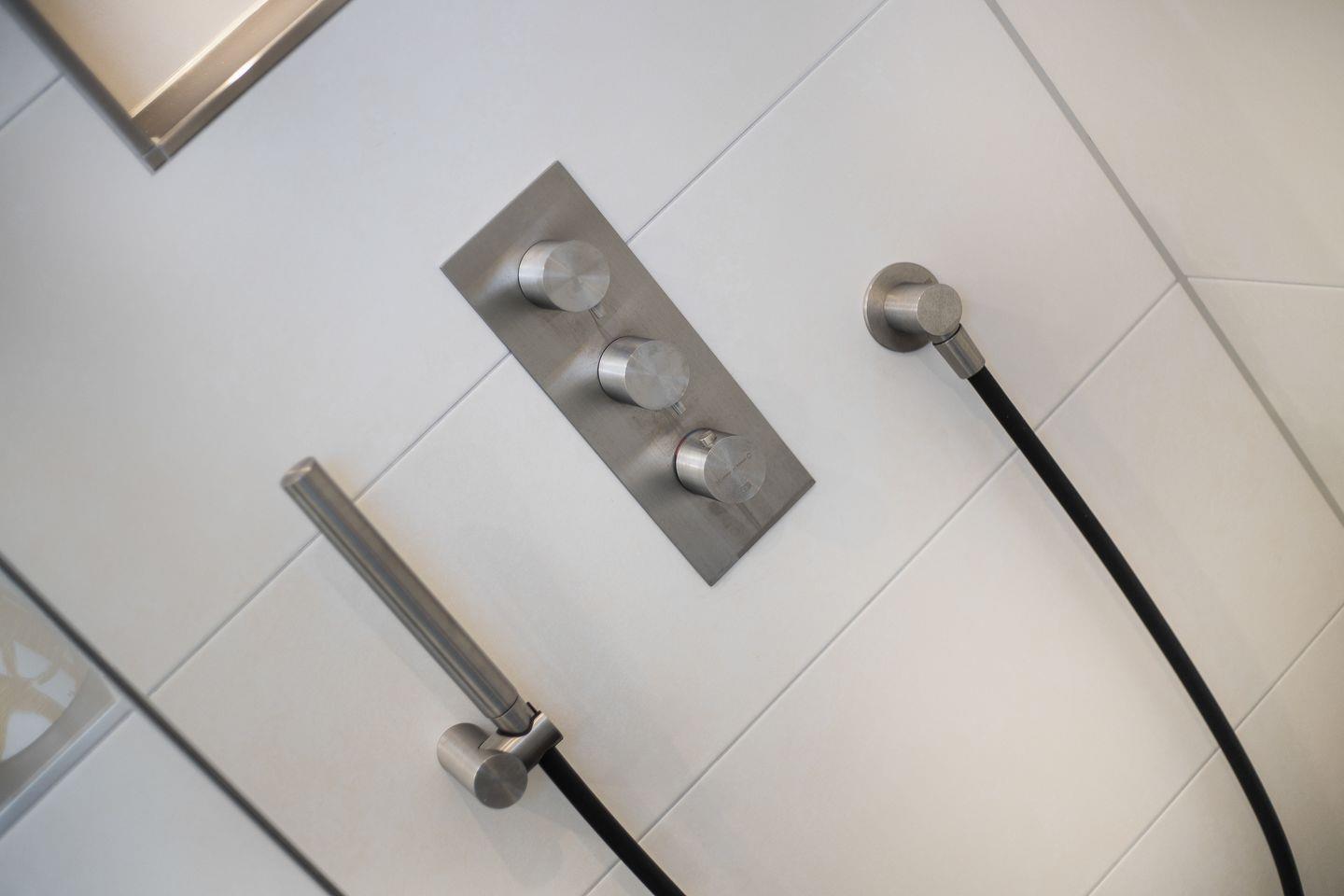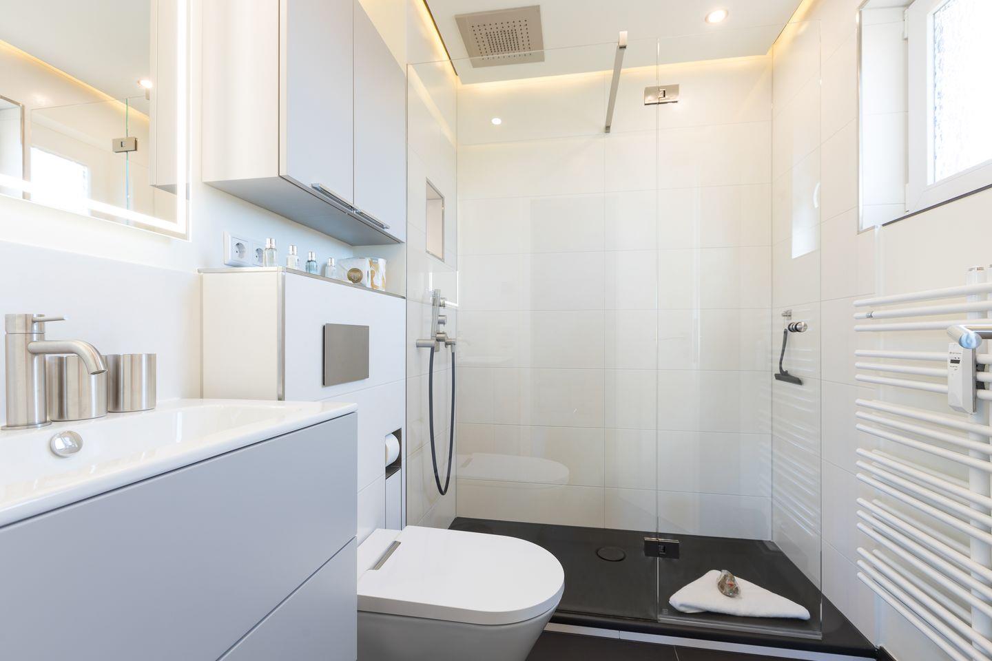 Duschbad mit Regendusche und Fußbodenheizung, Dusch-WC der Firma Axent