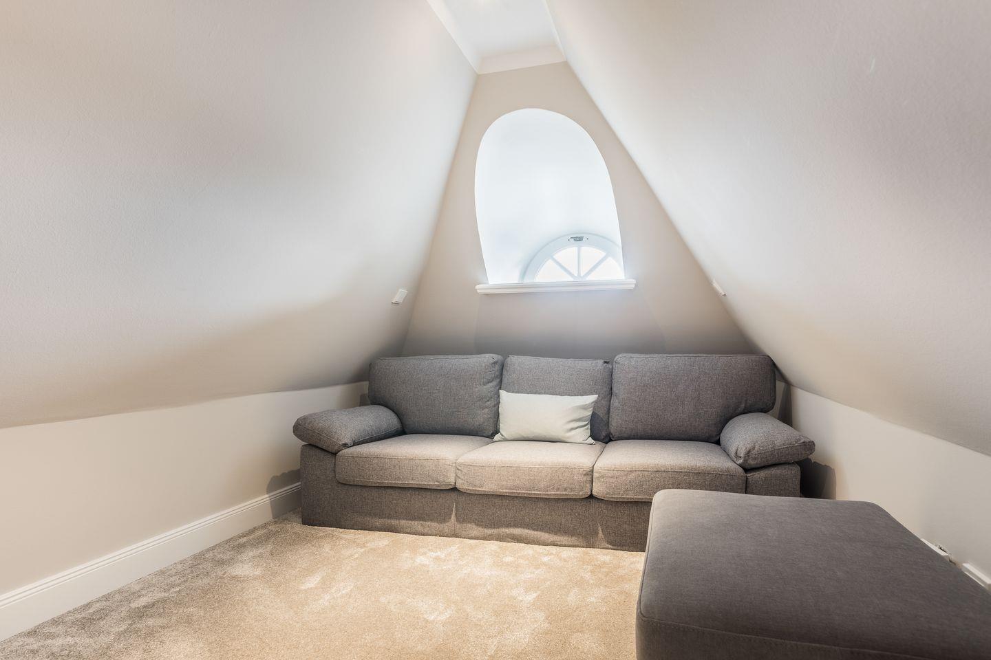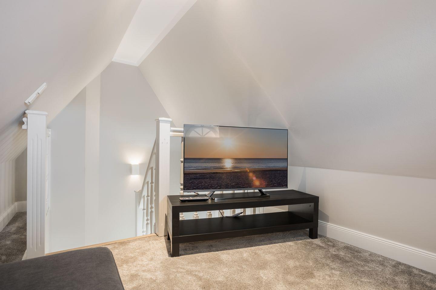 Für kleine Entdecker, die sich vor den Großen verstecken möchten, oder auch als Ruheplatz für die Eltern, gibt es im Dachgeschoss des Hauses einen kleinen, gemütlichen Rückzugsort mit Flatscreen-TV und Couch.
