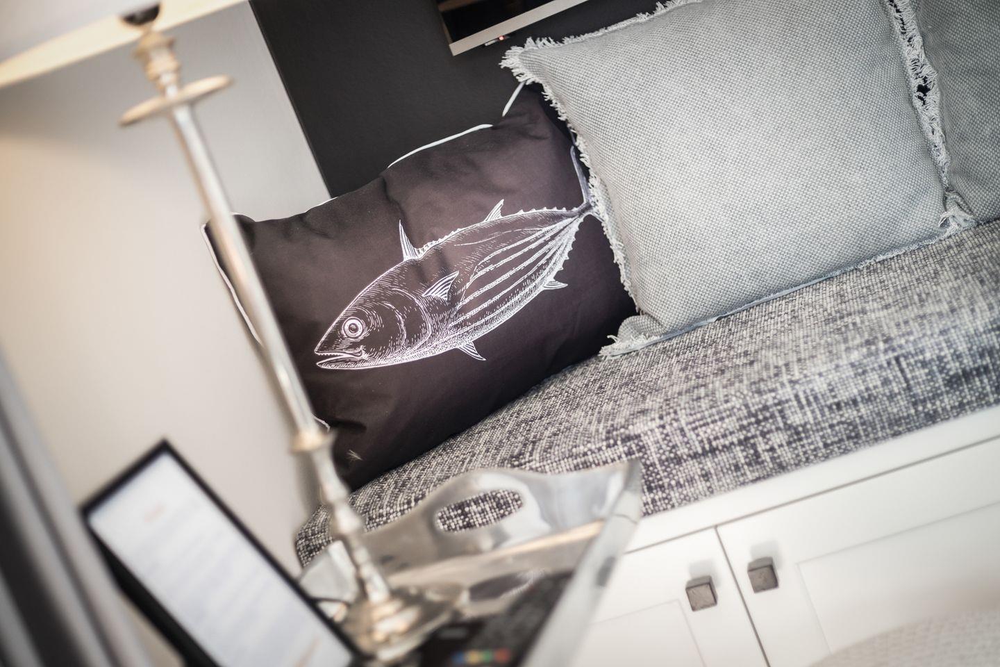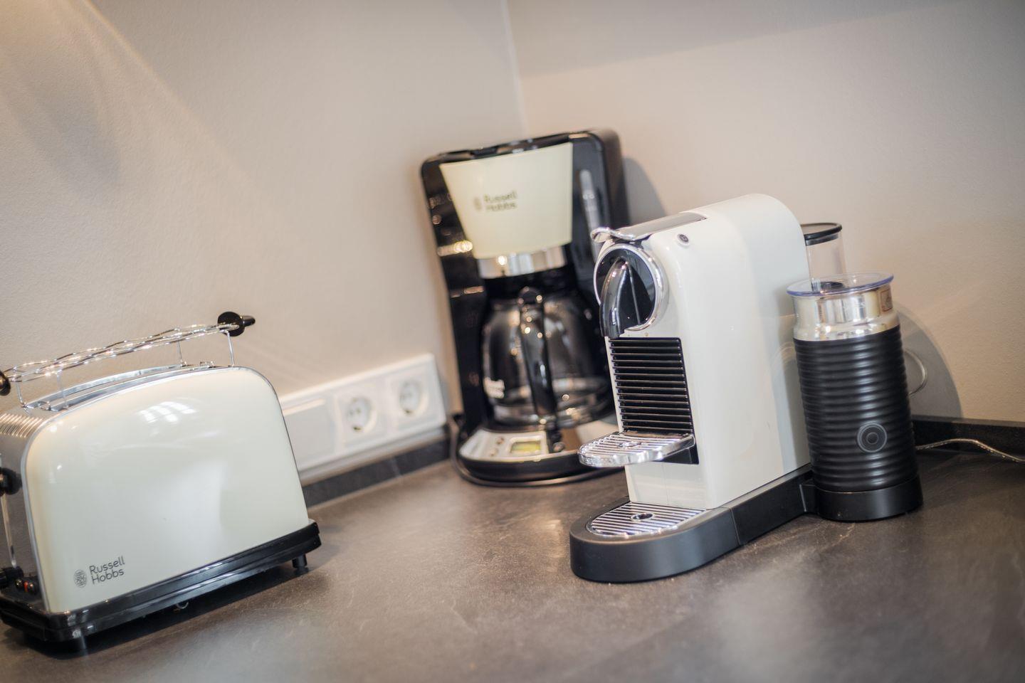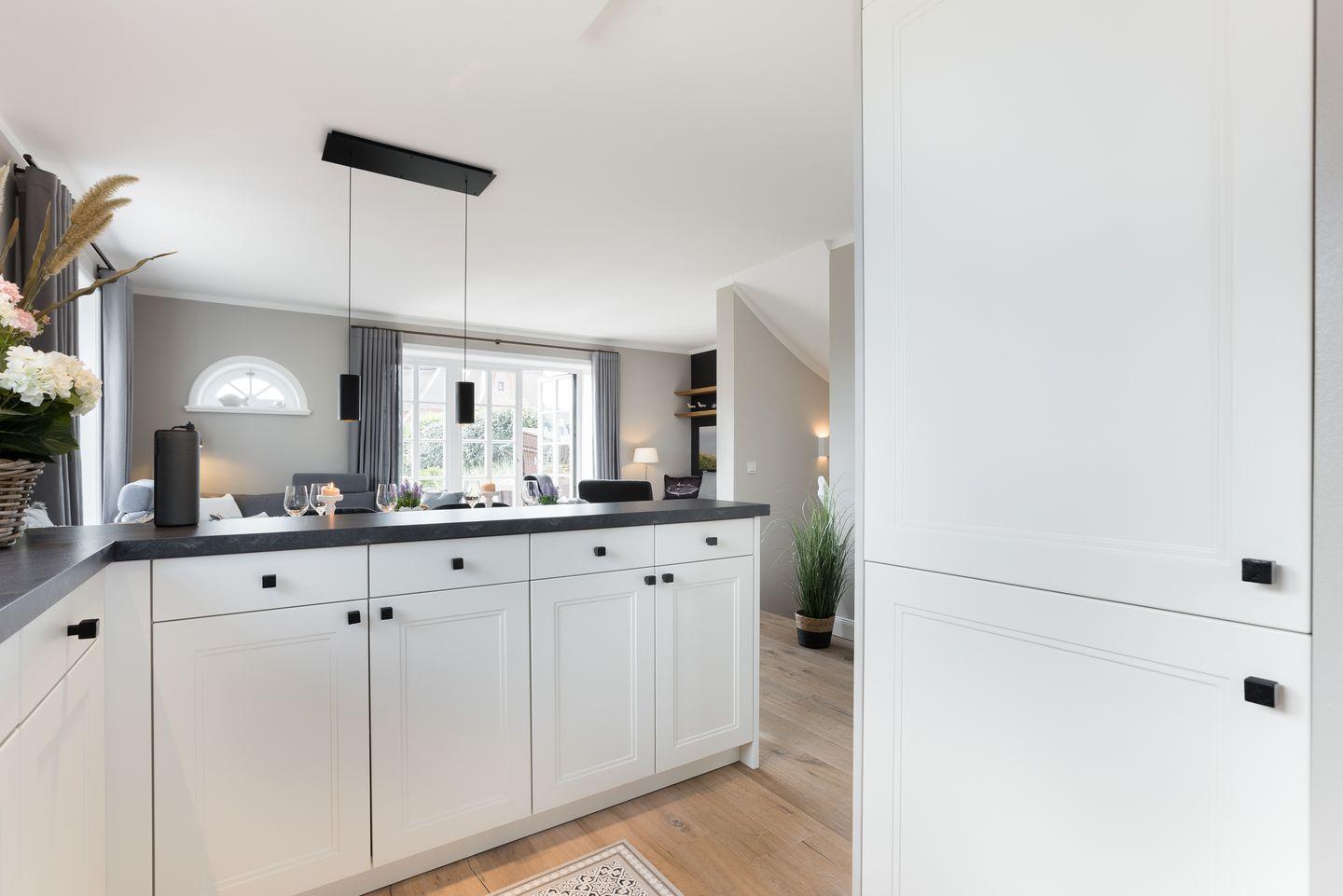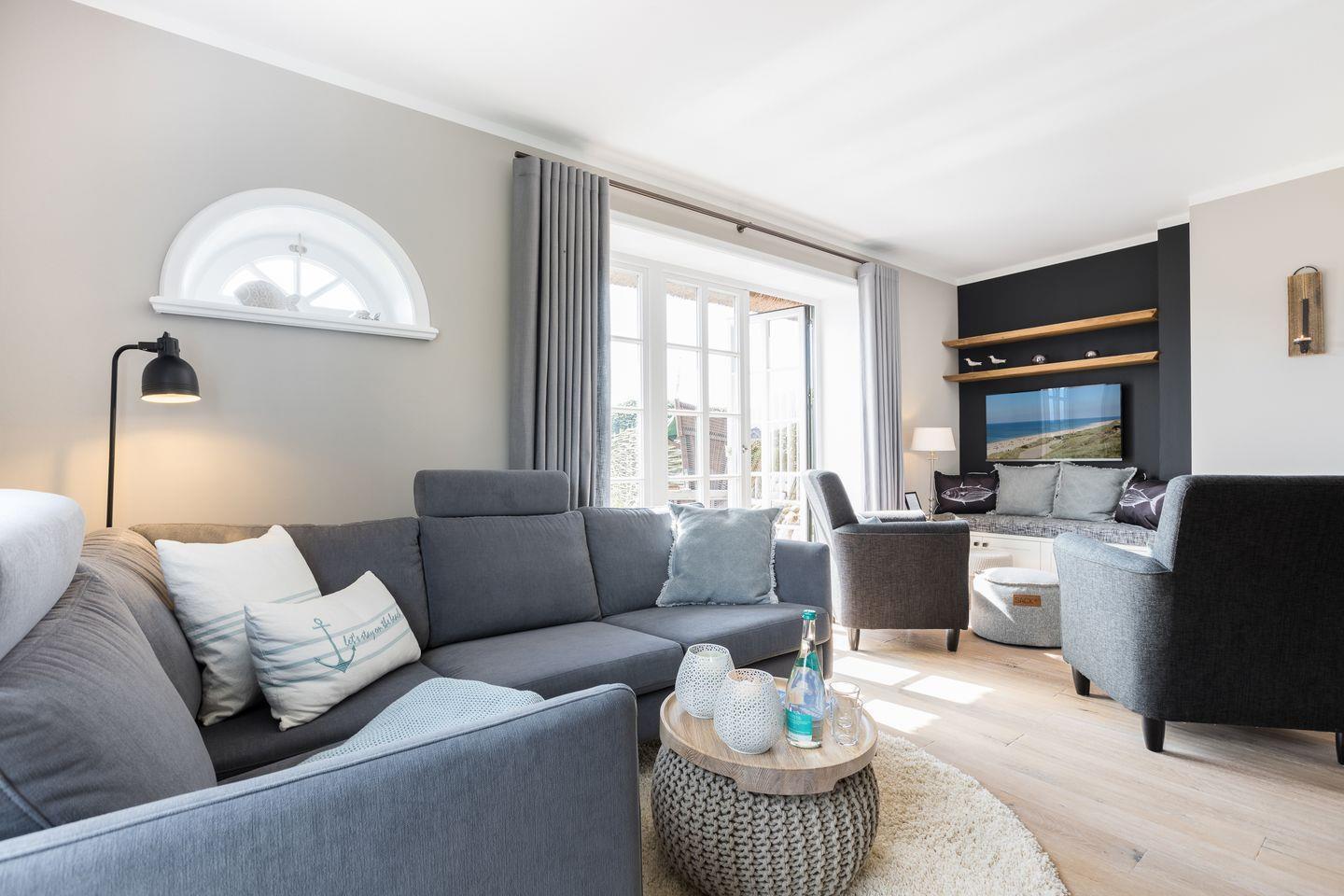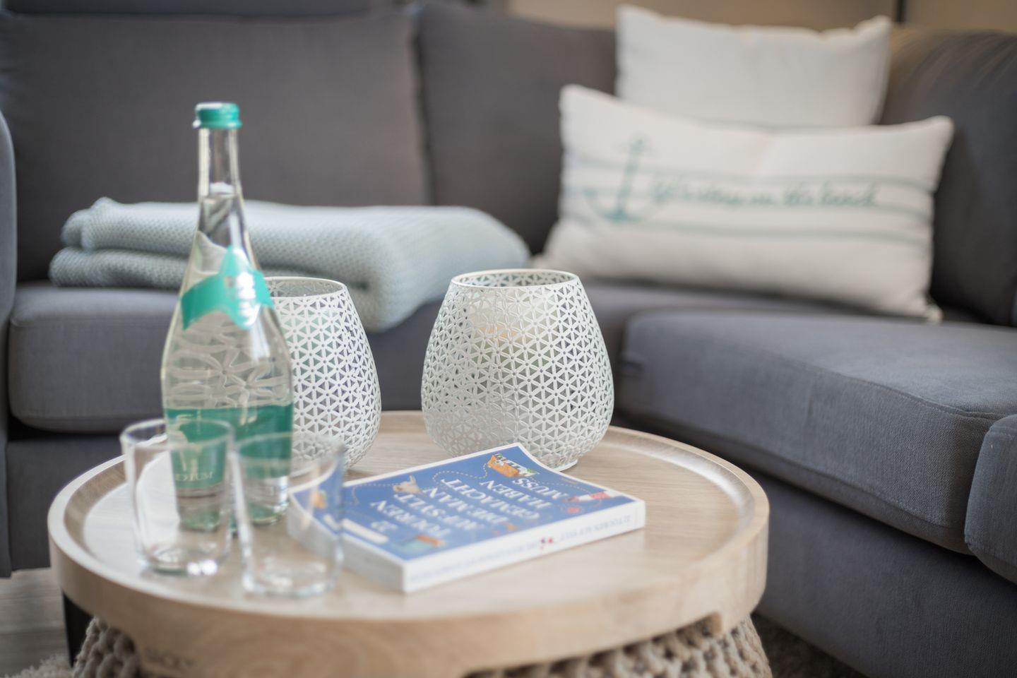 Der helle Wohnraum erwartet Sie mit einer stilvollen Einrichtung und bodentiefen Fenstern, die schon den Blick auf den schönen Garten freigeben. Entspannen Sie sich am Elektro-Kamin oder genießen Sie Ihr Familiendinner am großen Esstisch. Das Ferienhaus verfügt über einen schön angelegten Garten mit Terrasse, die in der Saison mit Strandkorb und Gartenmöbeln ausgestattet ist. In der offenen Küche wird es Ihnen ausstattungstechnisch an nichts fehlen. Von der Nespresso-Maschine über ein Induktionskochfeld bis hin zur Geschirrspülmaschine ist hier alles vorhanden, was Sie zum Zaubern in der Küche benötigen. Auf gleicher Ebene zum Wohnbereich finden Sie außerdem ein Gäste-WC.