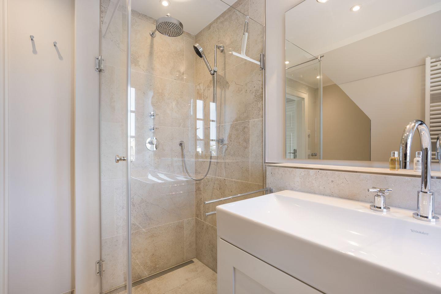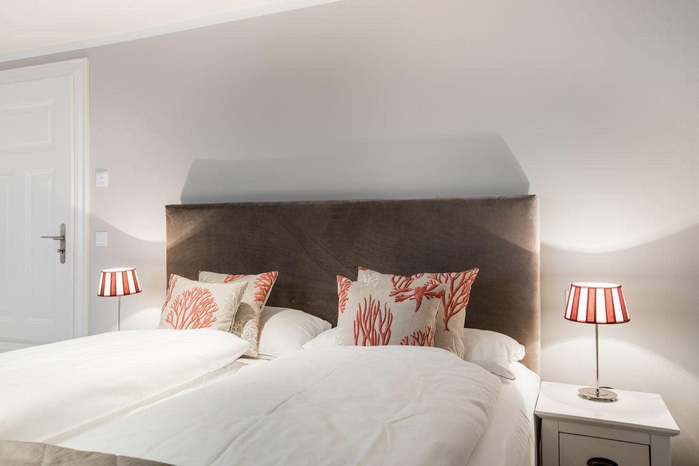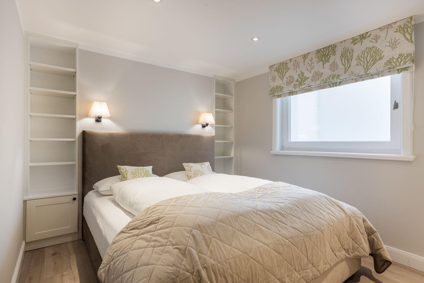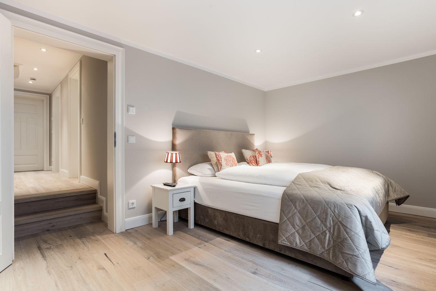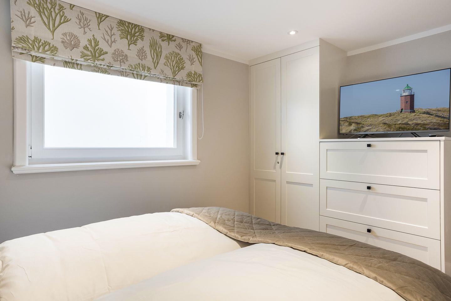 Im Untergeschoss des Hauses erwarten Sie zwei Räume mit je einem Doppelbett und Flatscreen-TV sowie ein Badezimmer mit Dusche und WC. Das Badezimmer bietet Ihnen außerdem eine kleine, private Sauna, die Ihnen die kalten Tage auf Sylt sicherlich versüßen wird. Im Obergeschoss finden Sie ein weiteres Schlafzimmer mit Doppelbett und Flatscreen-TV und einen Schlafraum mit Einzelbett und kleinem Schreibtisch. Auch auf dieser Ebene bietet Ihnen das Haus ein Badezimmer mit Dusche und WC.