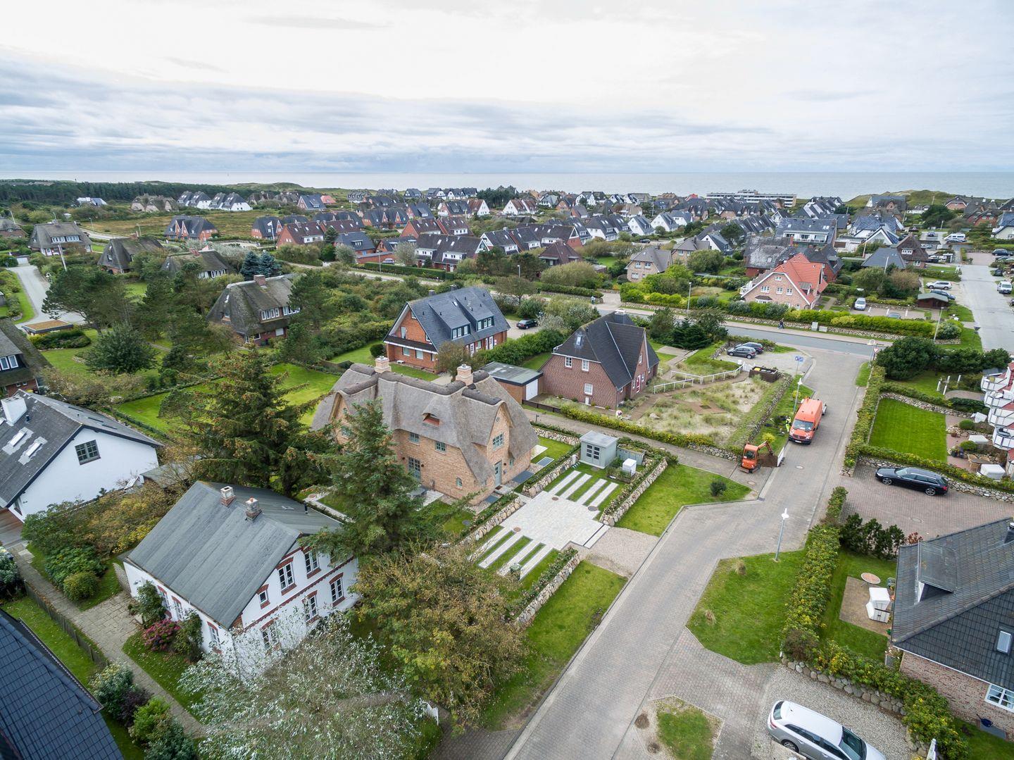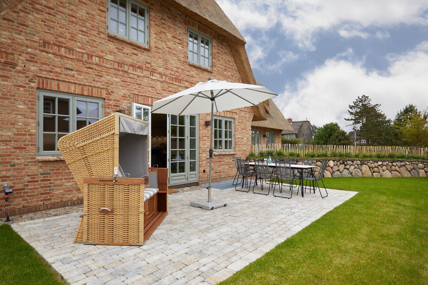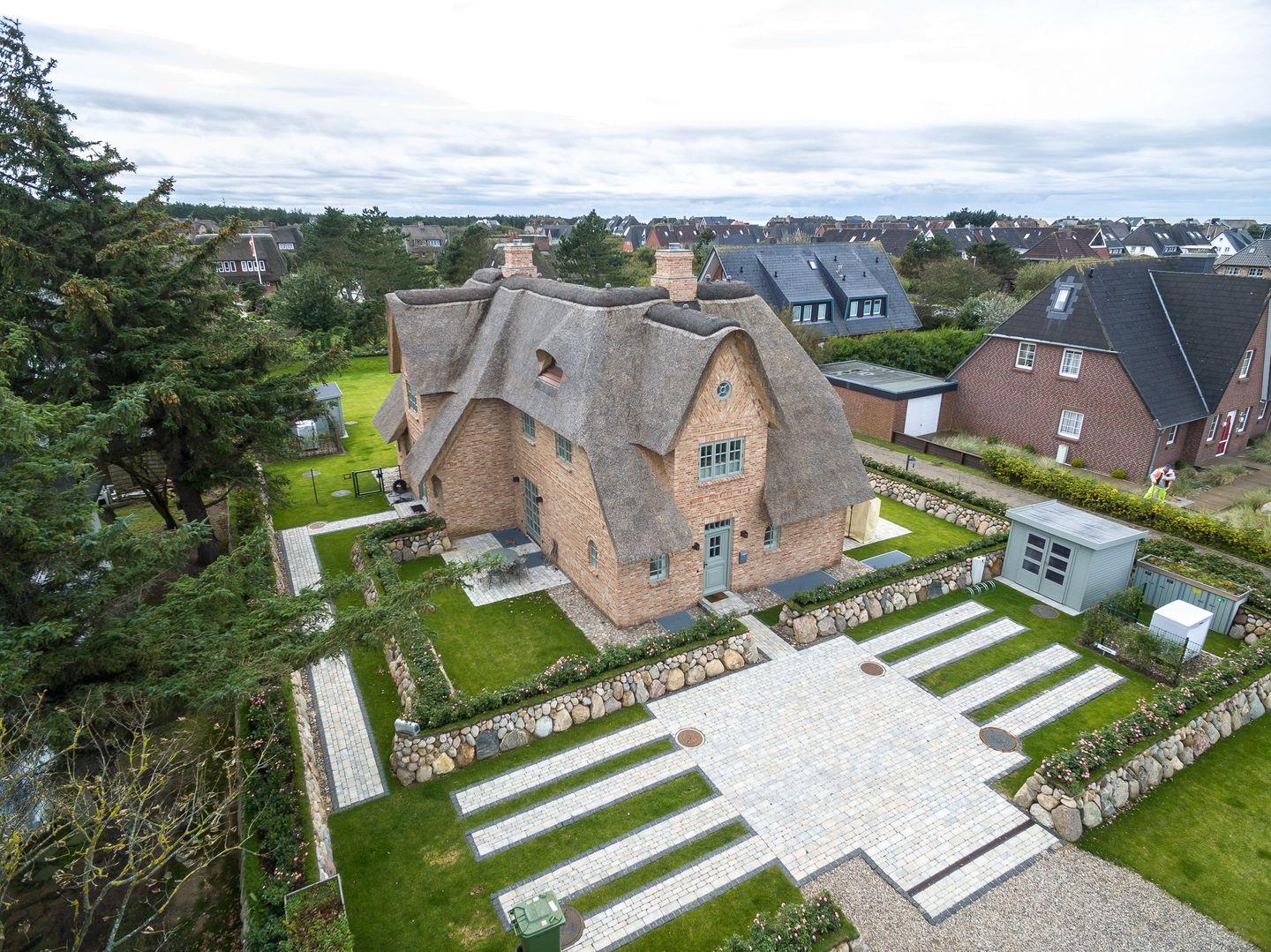 Luxushaus unter Reet in bevorzugter, zentraler Lage Wenningstedts. Stattliche ca. 209 qm Nutzfläche, im Erd-, Unter-, Obergeschoss sowie Spitzboden empfangen bis zu 6 Erwachsene und 2 Kinder.