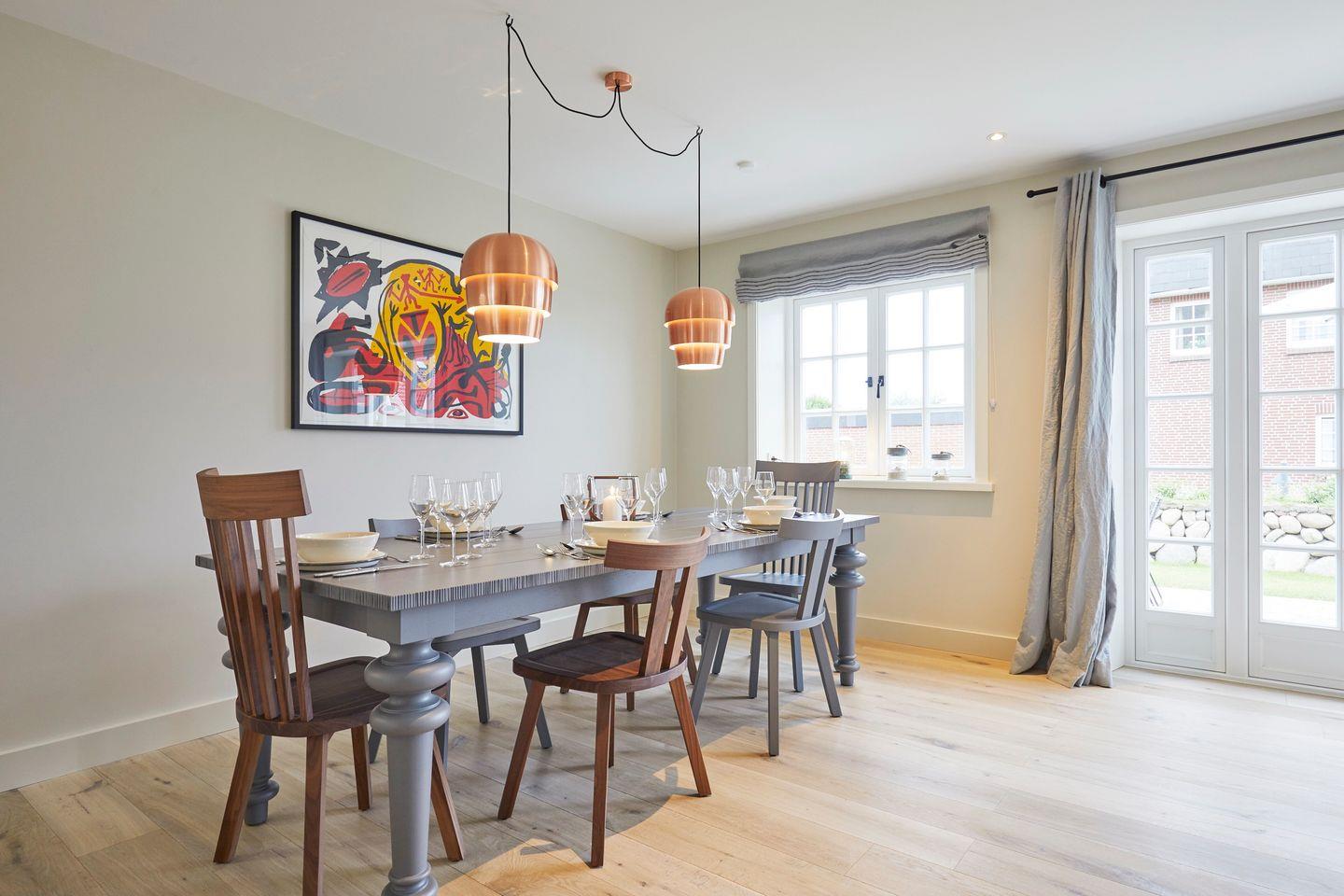 Design ? Mehr geht nicht ! Kostbarer Ölsandstein in Fluren und Bädern, fußschmeichelnde Eichendielen in Wohn- und Schlafbereichen. Farrow [&] Ball Wandfarben strahlen für sich. Nichts ist zu viel dekoriert, aber auch nichts zu wenig, so dass Coolness Cozyness trifft. Die Details sind spitze: Marokkanische, handgefertigte Fliesen in den Bädern überzeugen optisch wie haptisch. Wunderschön altes Holz zieht sich wie ein roter Faden durch das ganze Haus und lässt sich vom Gäste-WC bis hin zur handgefertigten Garderobe wiederfinden und bestaunen. Sehr schöne Bad Keramiken und Armaturen. Und eben ganz viel Liebe zum Detail, wohin man auch schaut.