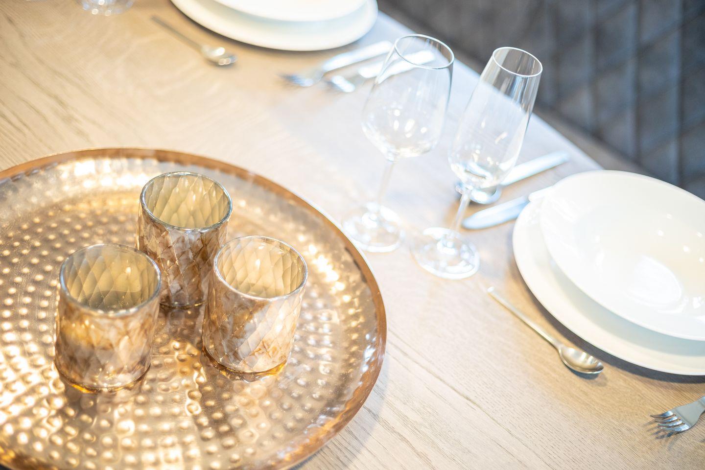 Hochwertiges Eichenparkett, warme Sandtöne in Kombination mit edlem Grau und eine stilvolle Einrichtung