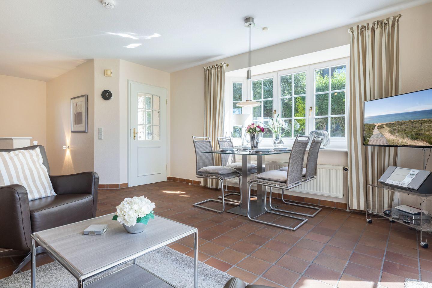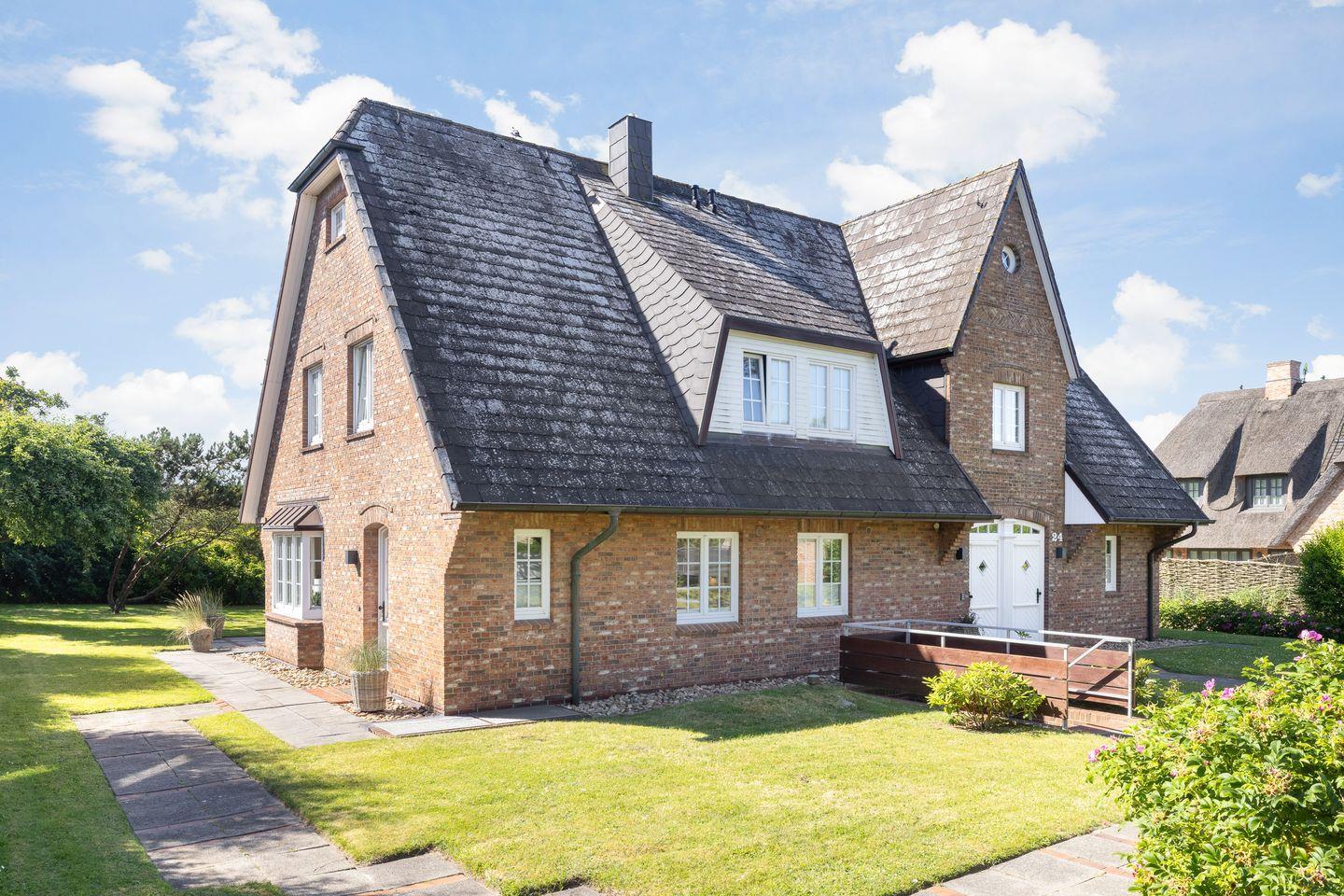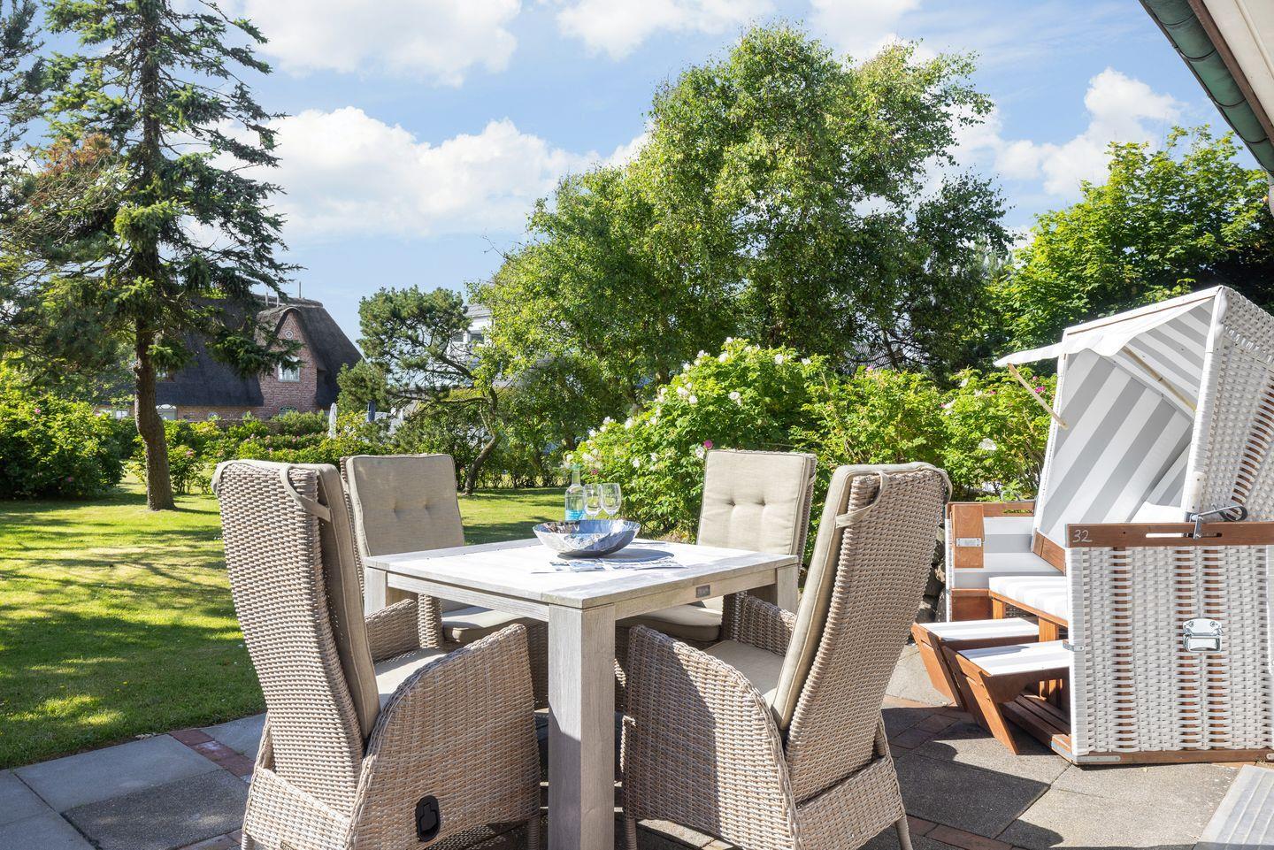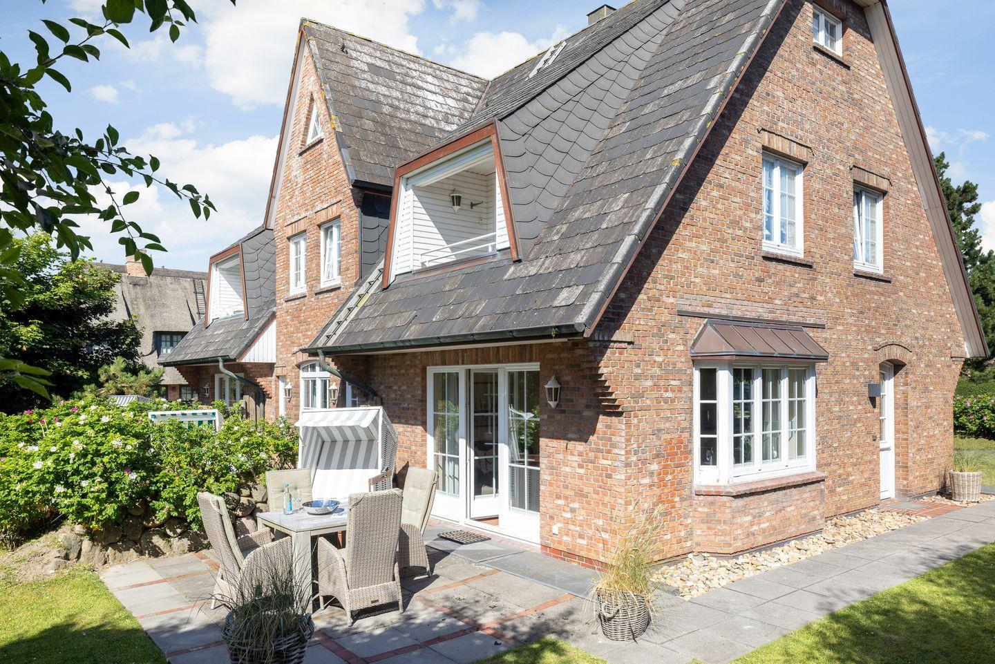 Gemütliches Komfort-Landhaus in Wenningstedt auf Sylt, 490 m vom Strand entfernt, mit Terrasse, Gartenmöbeln und moderner Ausstattung.