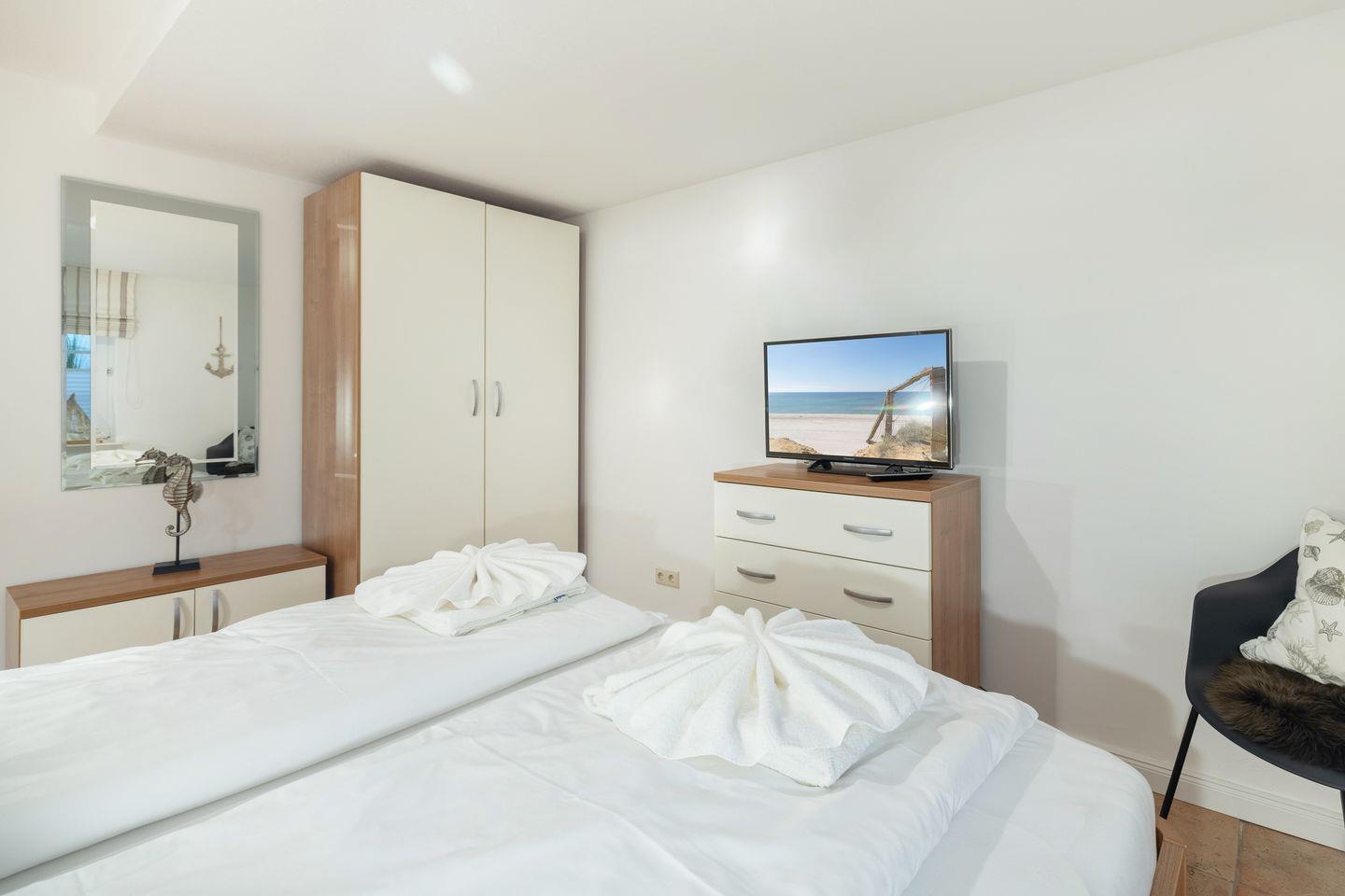 UG: 1 Raum mit Doppelbett (Boxspringbett) (180x200cm) sowie 1 Raum mit Doppelbett (180x200cm). Dusche/WC.
