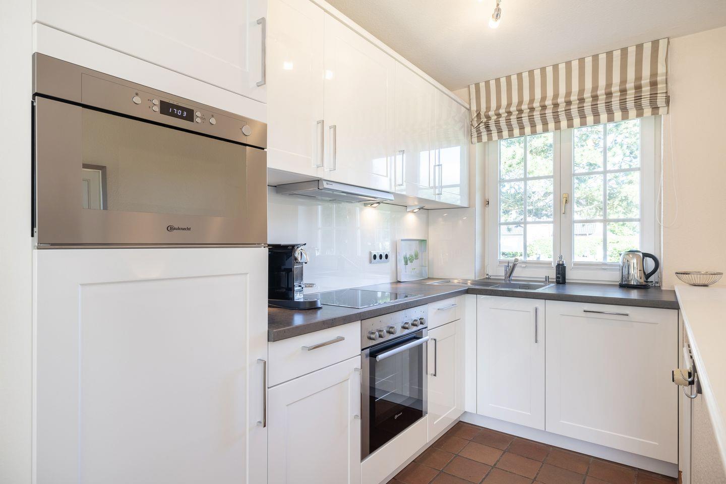 EG: Geschmackvoll eingerichteter, heller Wohnraum mit Kabel-TV und Telefon. Integrierte Küche mit Geschirrspüler und Backofen. Gäste-WC.