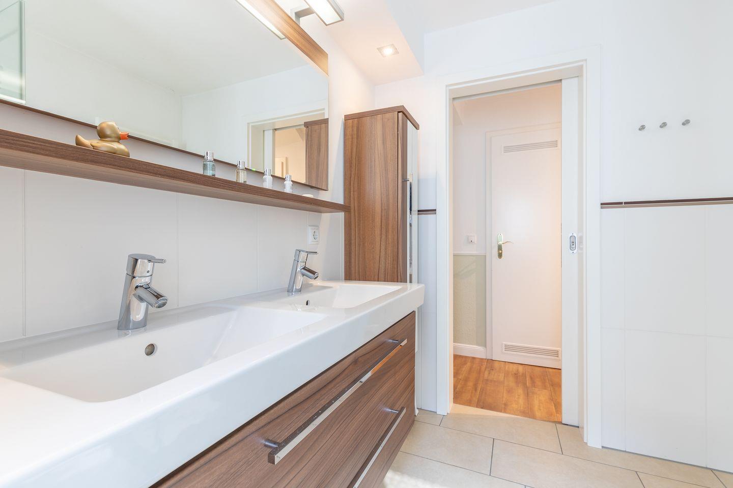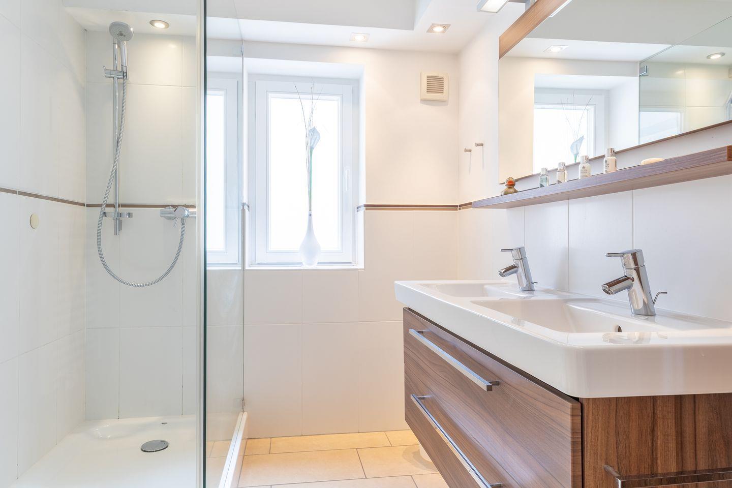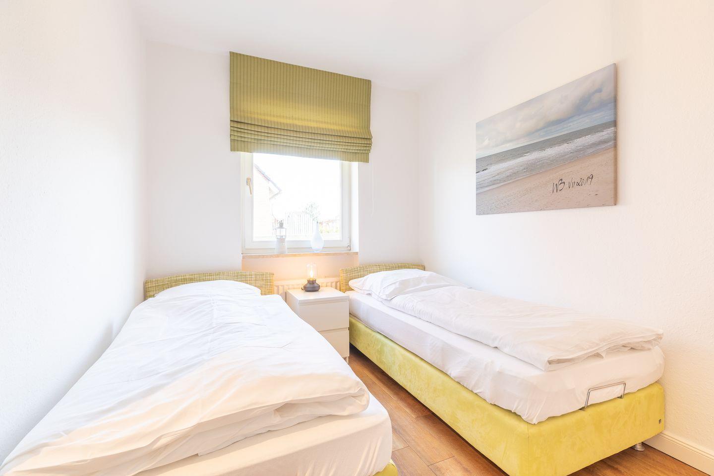 mit zwei Einzelbetten, auch das große und moderne Duschbad.