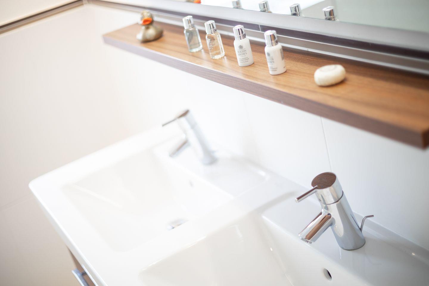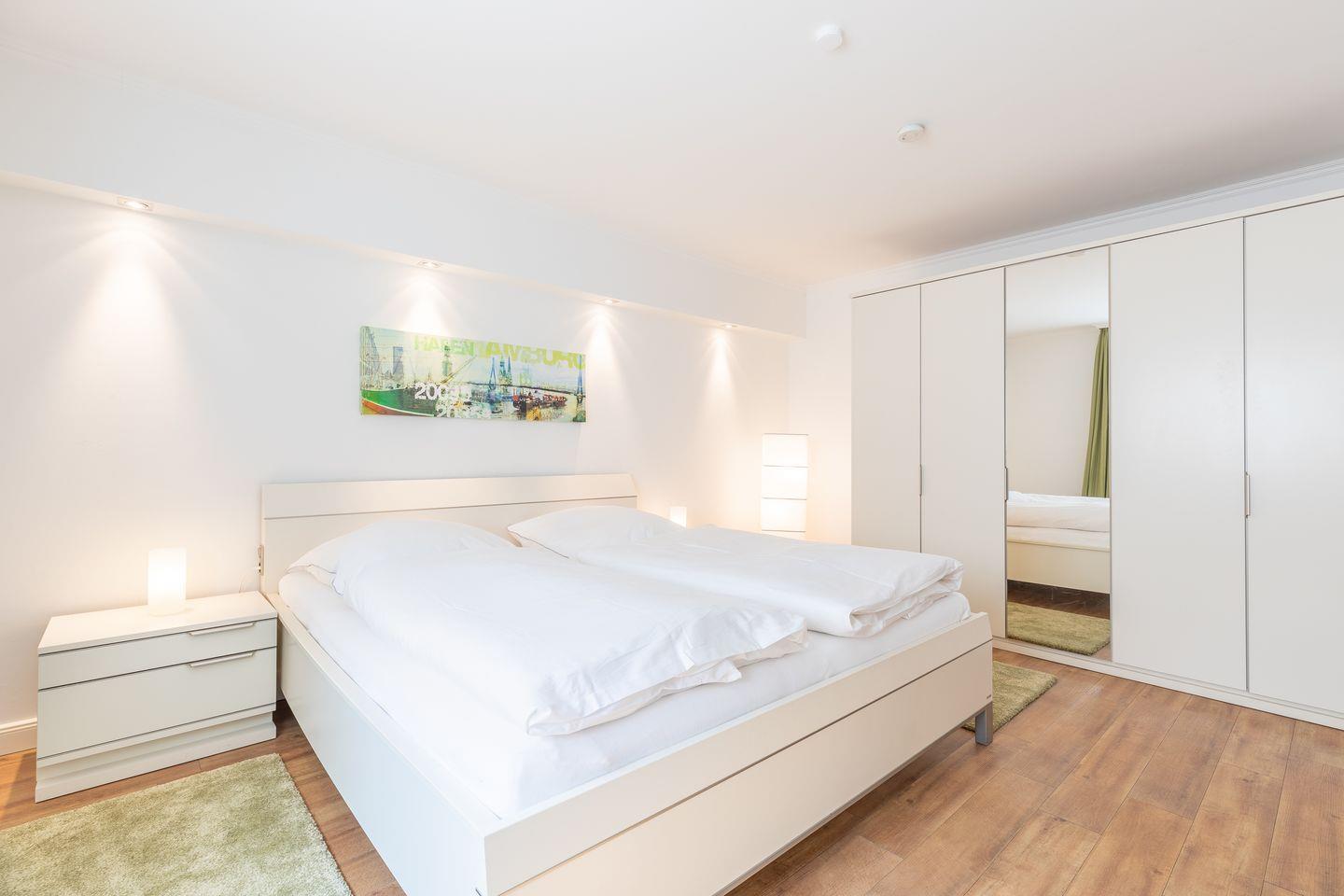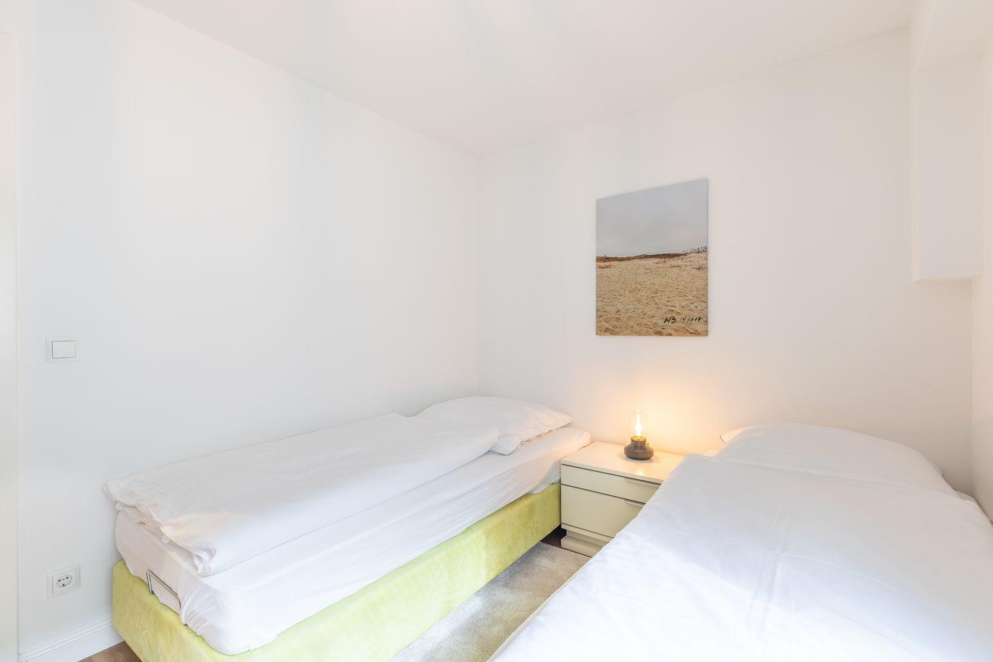 Eine Treppe tiefer erwartet Sie neben den beiden anderen Schlafzimmer – eins davon mit einem Doppelbett, eins