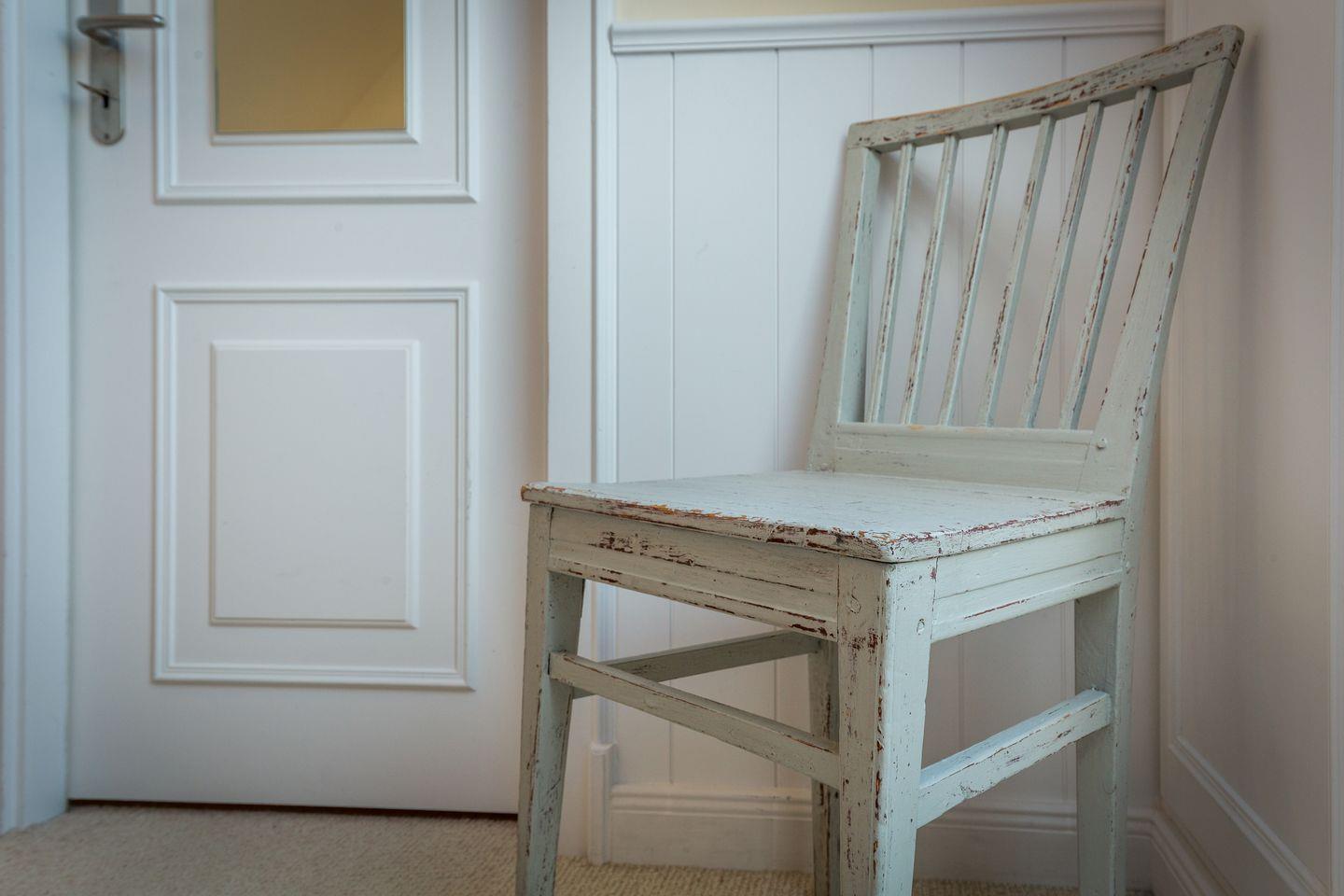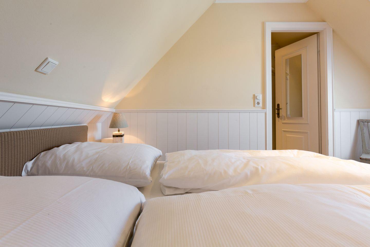 Über die Treppe erreichen Sie das Dachgeschoss, in dem sich ein weiteres Schlafzimmer mit einem Doppelbett befindet.