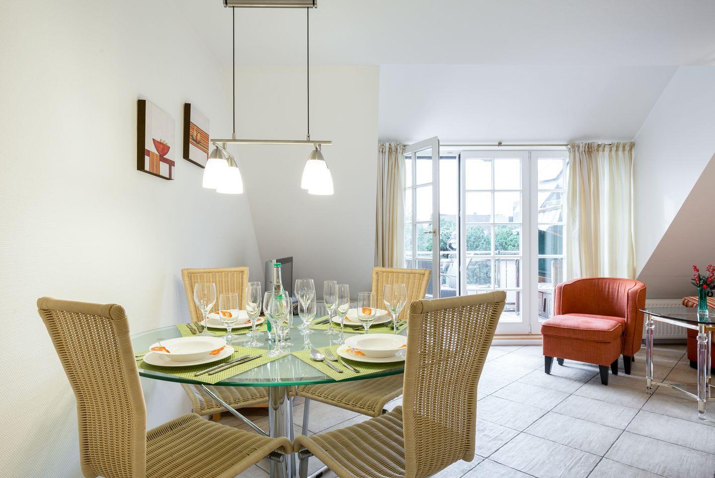 In zentraler, aber dennoch ruhiger Lage gelegenes 3-Raum Appartement im Ober- und Dachgeschoss, mit ca. 60 qm Wohn-Nutzfläche für bis zu 3 Personen.