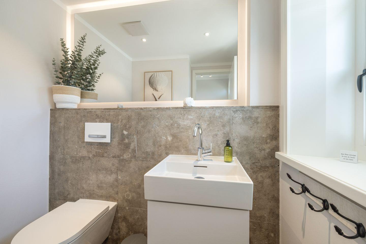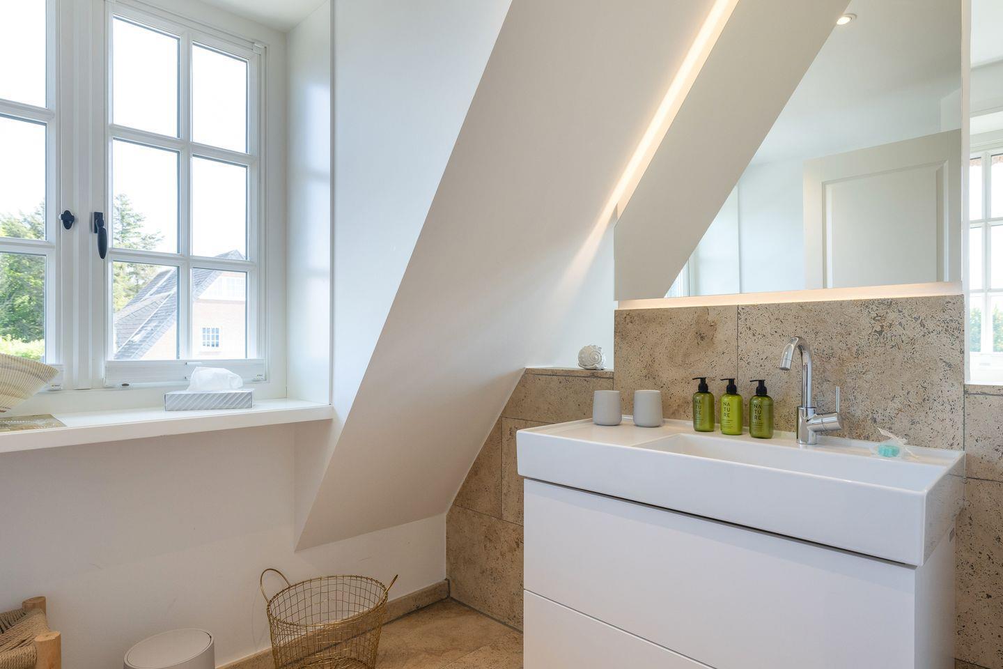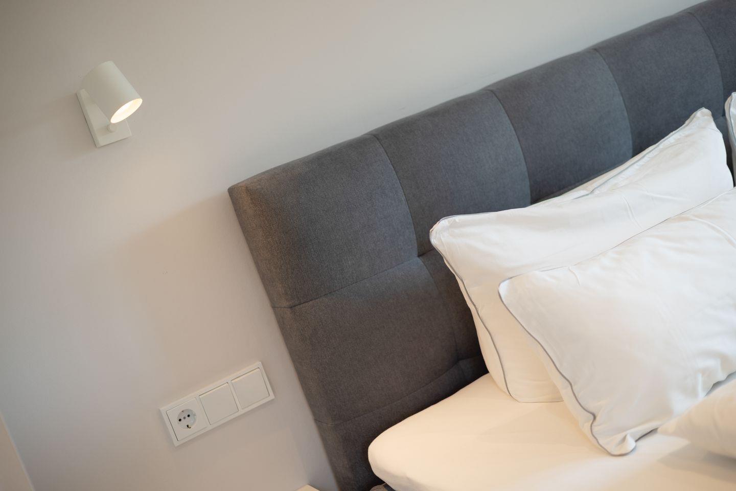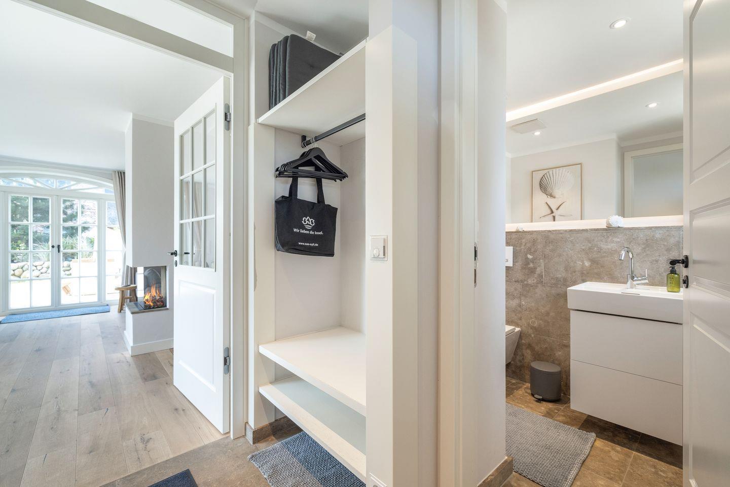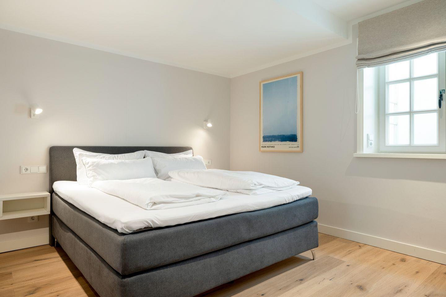 Im Obergeschoss des Hauses erwartet Sie ein Schlafzimmer mit Doppel-Boxspringbett und Flatscreen-TV sowie ein Tageslichtbadezimmer mit großer, offener Dusche und WC. Ein weiteres Stockwerk weiter oben befindet sich noch ein Raum mit gemütlichem, französischem Doppelbett. Im Untergeschoss des Hauses hält das Domizil zwei weitere Räume mit jeweils einem Boxspring-Doppelbett und Flatscreen-TV für Sie bereit. In dem Wellnessbadezimmer mit offener Dusche, großer Sauna und zwei Liegestühlen können Sie auch bei „Sylter Schietwetter“ wunderbar entspannen.