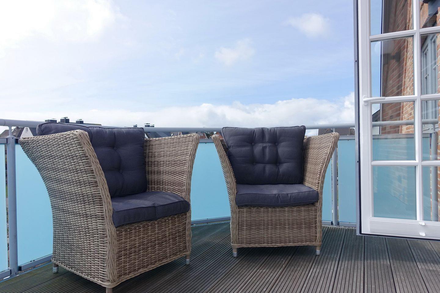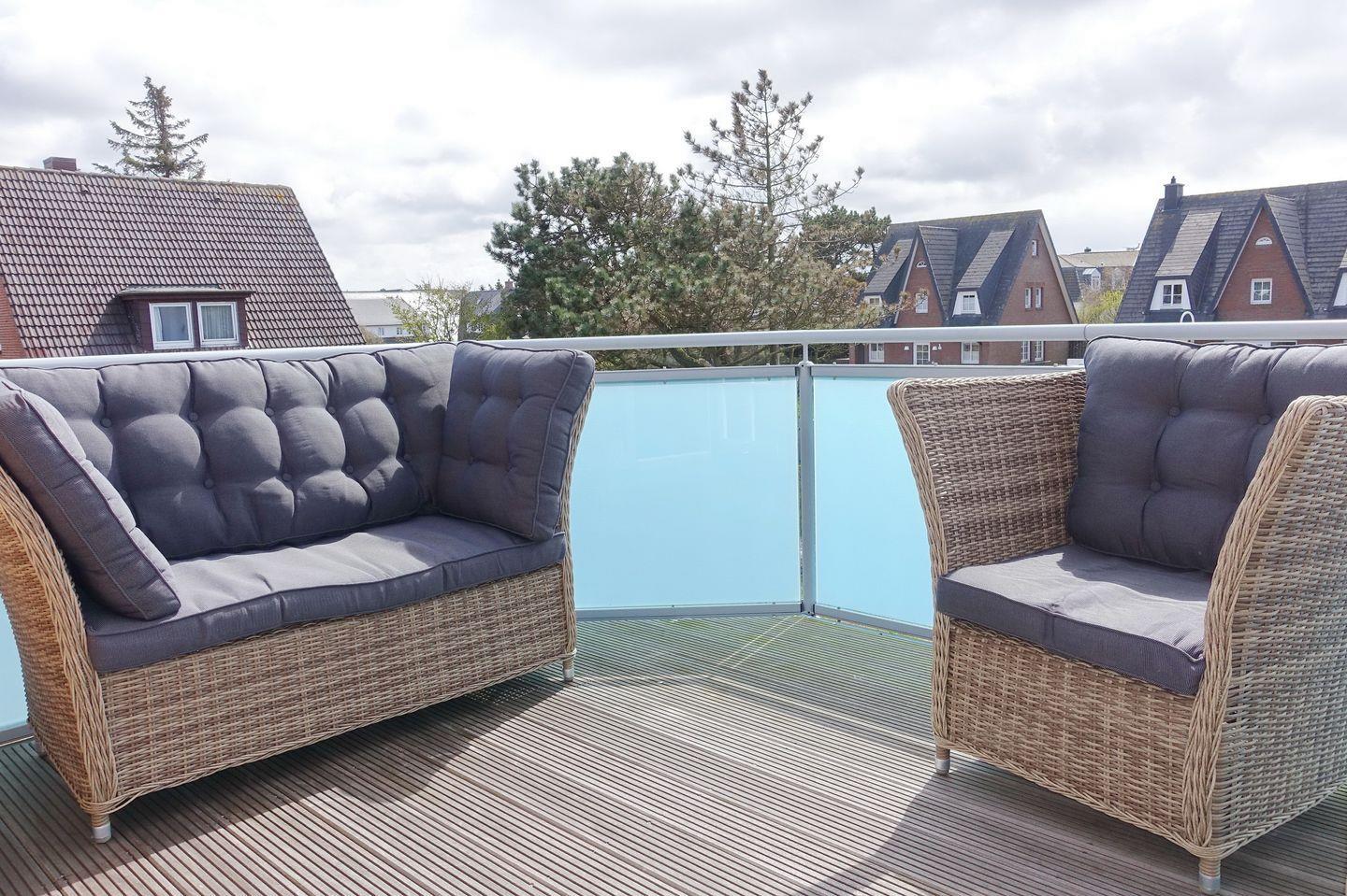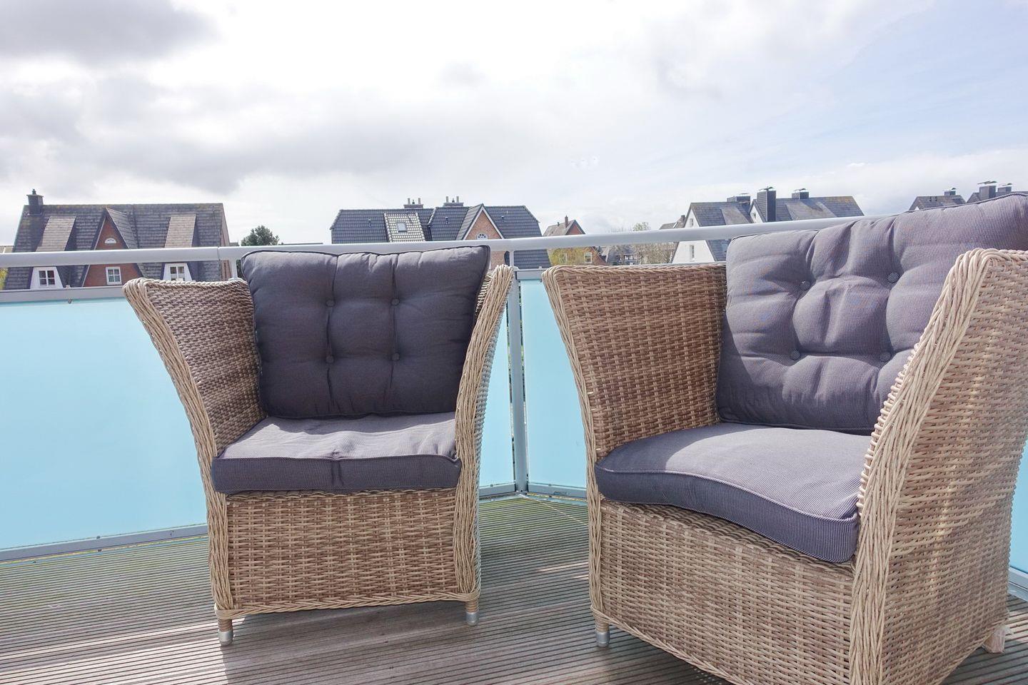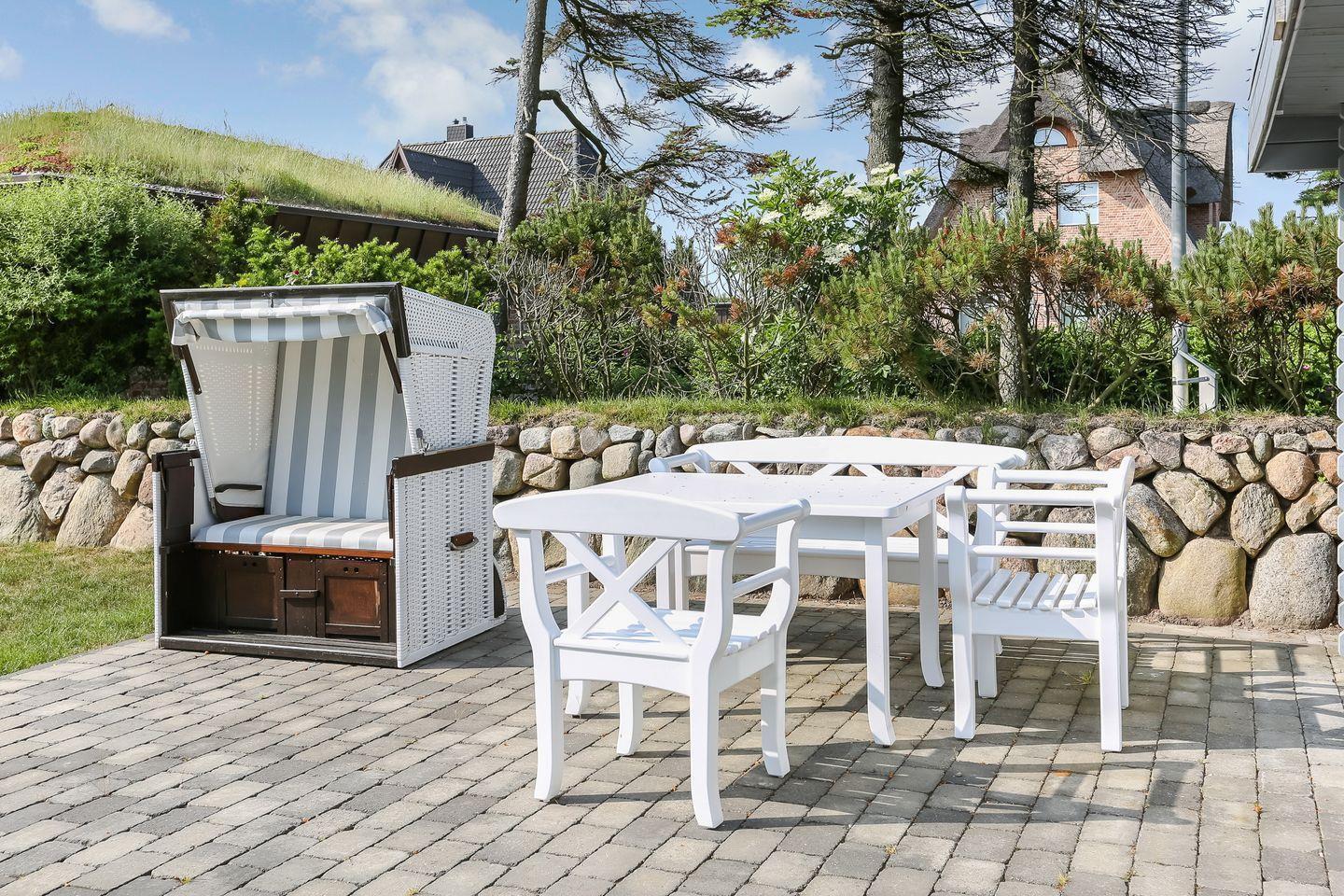 Sobald die Sylter Sonne scheint, stehen Ihnen gleich zwei überzeugende Open Air Optionen zur Verfügung: entscheiden müssen Sie sich zwischen Ihrem schönen Balkon, der durch die Südausrichtung bis in die Abendstunden herrlich sonnig ist. Durch die End-Sackgassenlage lässt sich Ihr Balkon wunderbar genießen, hier stören nahezu keinerlei Autos Ihre Relaxation. Oder aber Sie genießen "Garten total" in Ihrem rückwärtigen, großen eigenen Gartenbereich mit Friesenmöbeln und hochwertigem Strandkorb. Hier können Sie zurückgezogen Ihr Frühstück oder Abendessen genießen.