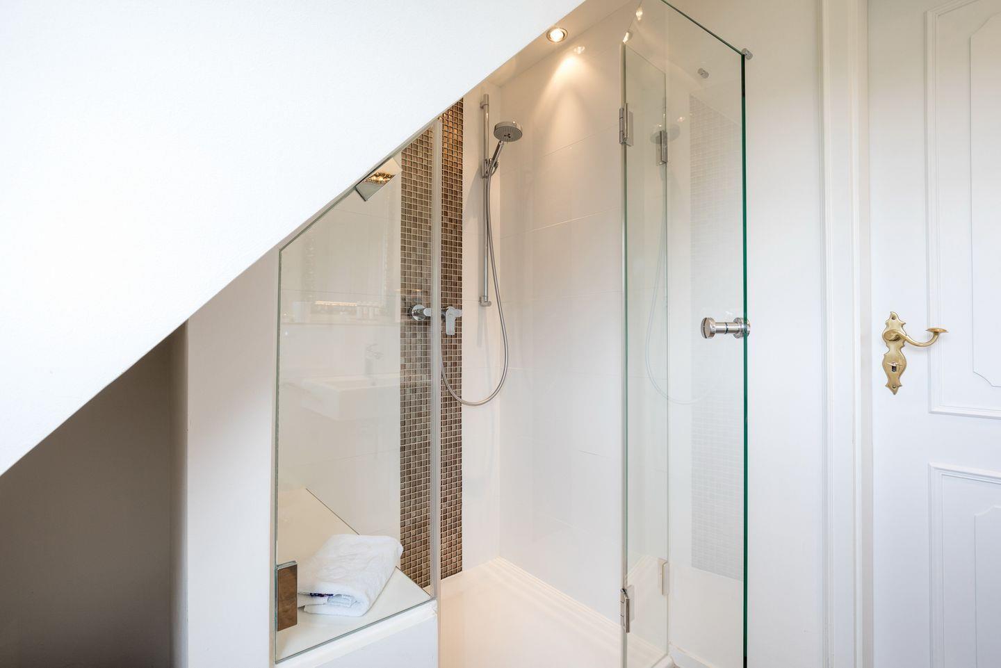 Obergeschoss: lichtdurchfluteter, geschmackvoll gestalteter Wohnraum mit Flat-TV, WLAN und DVD. Schöne Sitzecke. Integrierte kleine Luxusküche mit Geschirrspüler, Microwelle, Nespresso Kaffeemaschine und Backofen. Schönes Bad mit Duschet. Kleiner, sonniger Südbalkon mit Sitzgelegenheit (ca. von April–Oktober).