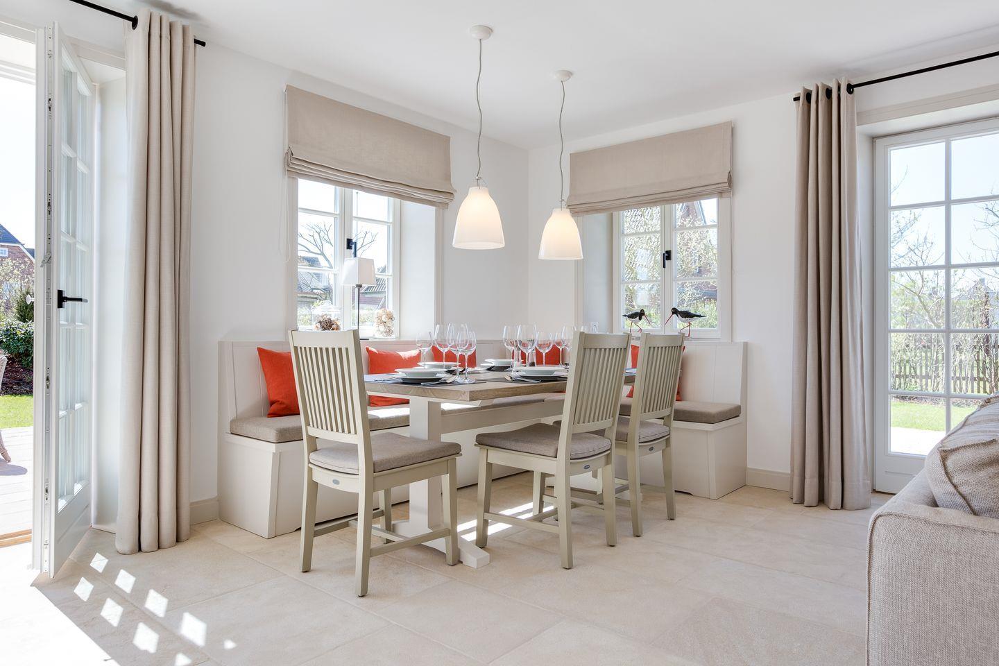 Das Haus bietet Ihnen auf 123 m² Nutzfläche alles was das Urlaubsherz begehrt. Im Erdgeschoss erwartet Sie ein großzügig gestalteter Wohn- und Essbereich, der stilvoll mit nordischen Accessoires eingerichtet ist. In der separaten Küche können Sie sich dank der tollen Ausstattung ein wunderbares Urlaubs-Dinner kochen und dieses auf einer der großzügigen Terrassen genießen. Diese ist von April bis Oktober mit einem Strandkorb und mehreren Sitz- und Liegemöglichkeiten ausgestattet. Im Erdgeschoss befindet sich außerdem ein Gäste-WC.
