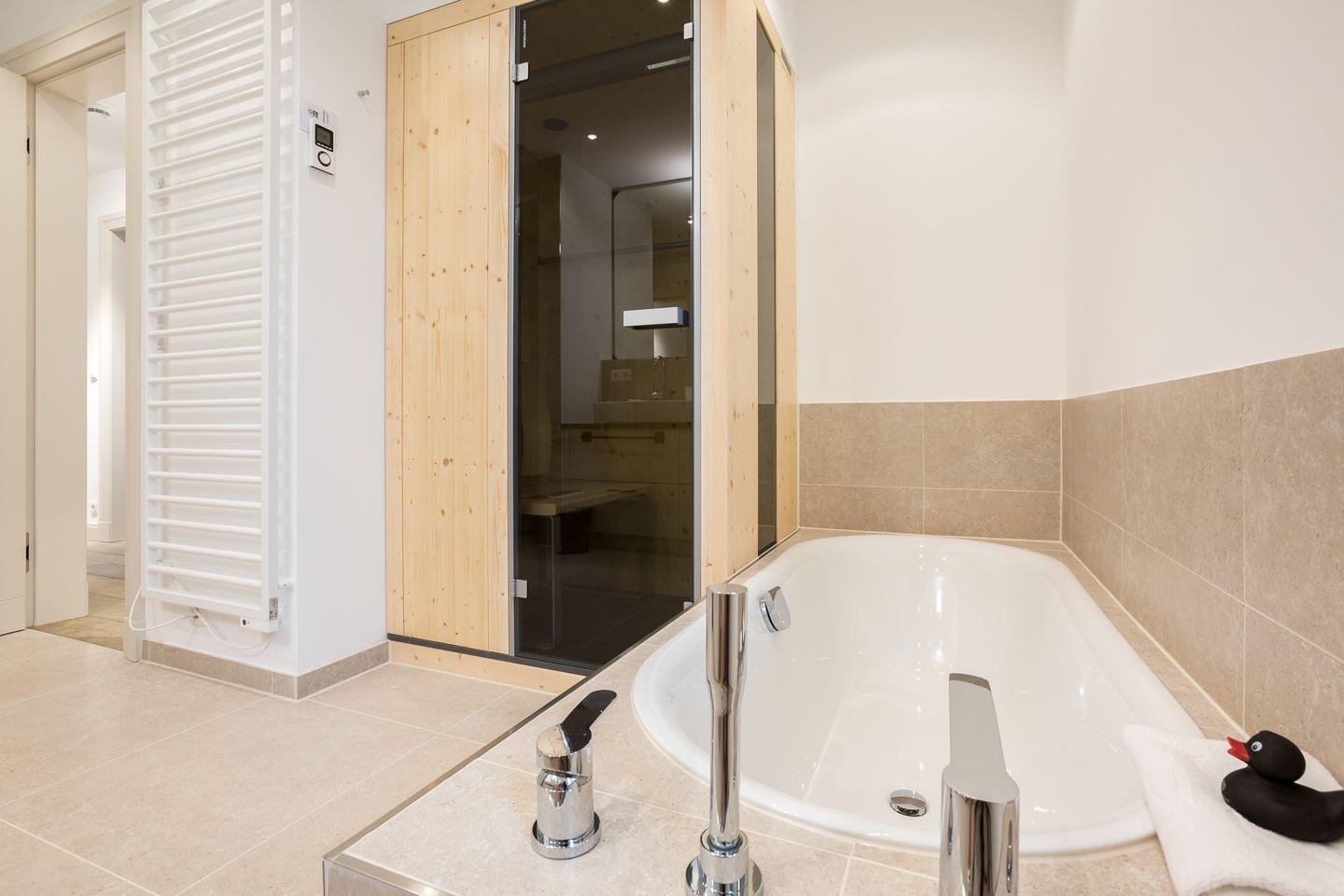 Das Untergeschoss des Hauses verfügt über einen Schlafraum mit Doppelbett und ein großzügiges Tageslichtbad mit Dusche, Badewanne und WC. Außerdem finden Sie hier eine Infrarotkabine „Physiotherm“ und einen Raum mit Waschmaschine und Trockner. Für Familien bietet dieses Haus ein ganz besonderes Highlight: Spielen Sie gemeinsam mit Ihren Kindern am hauseigenen Fußball-Kicker oder werfen Sie ein paar Pfeile auf die Dartscheibe, die sich im selben Raum befindet.