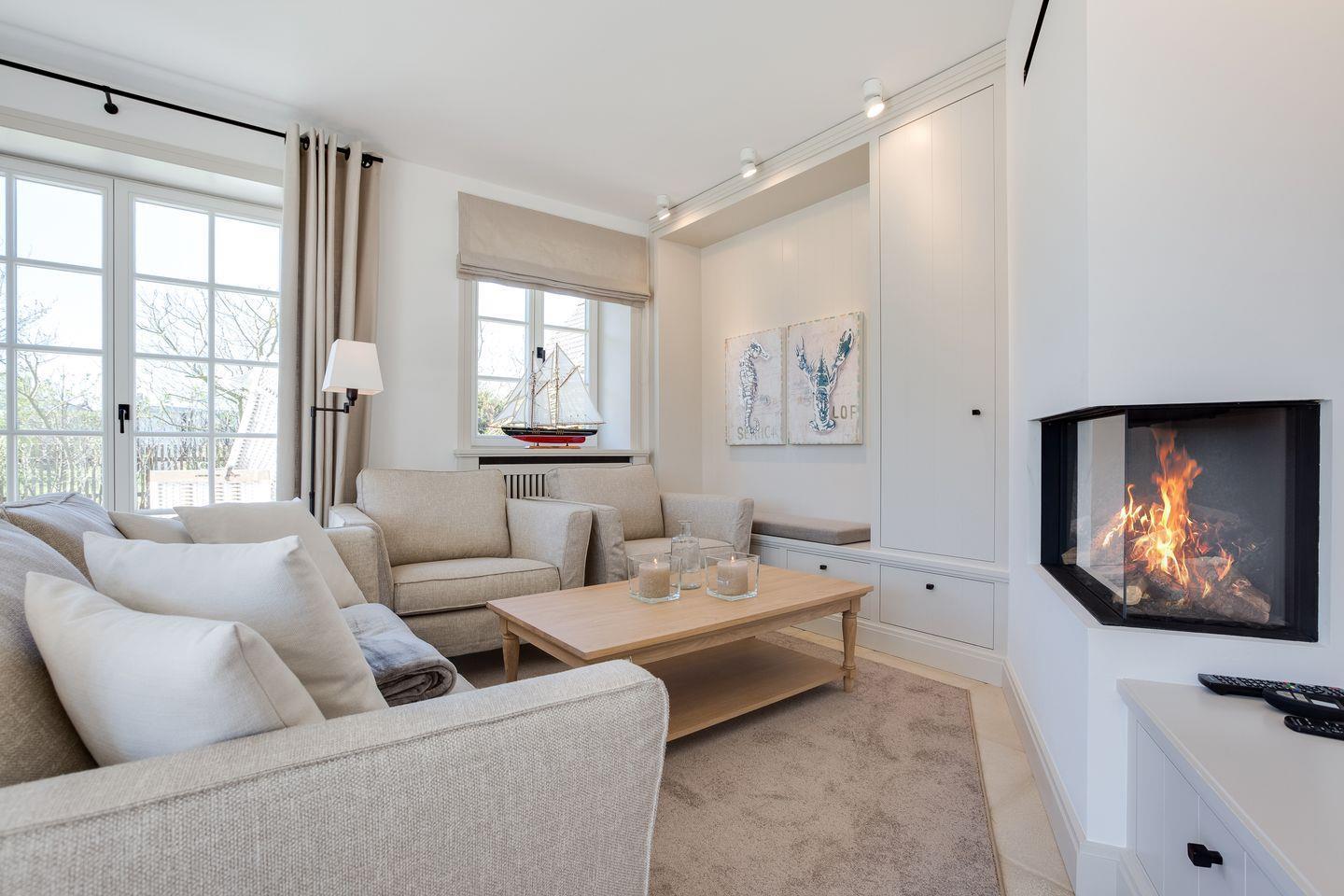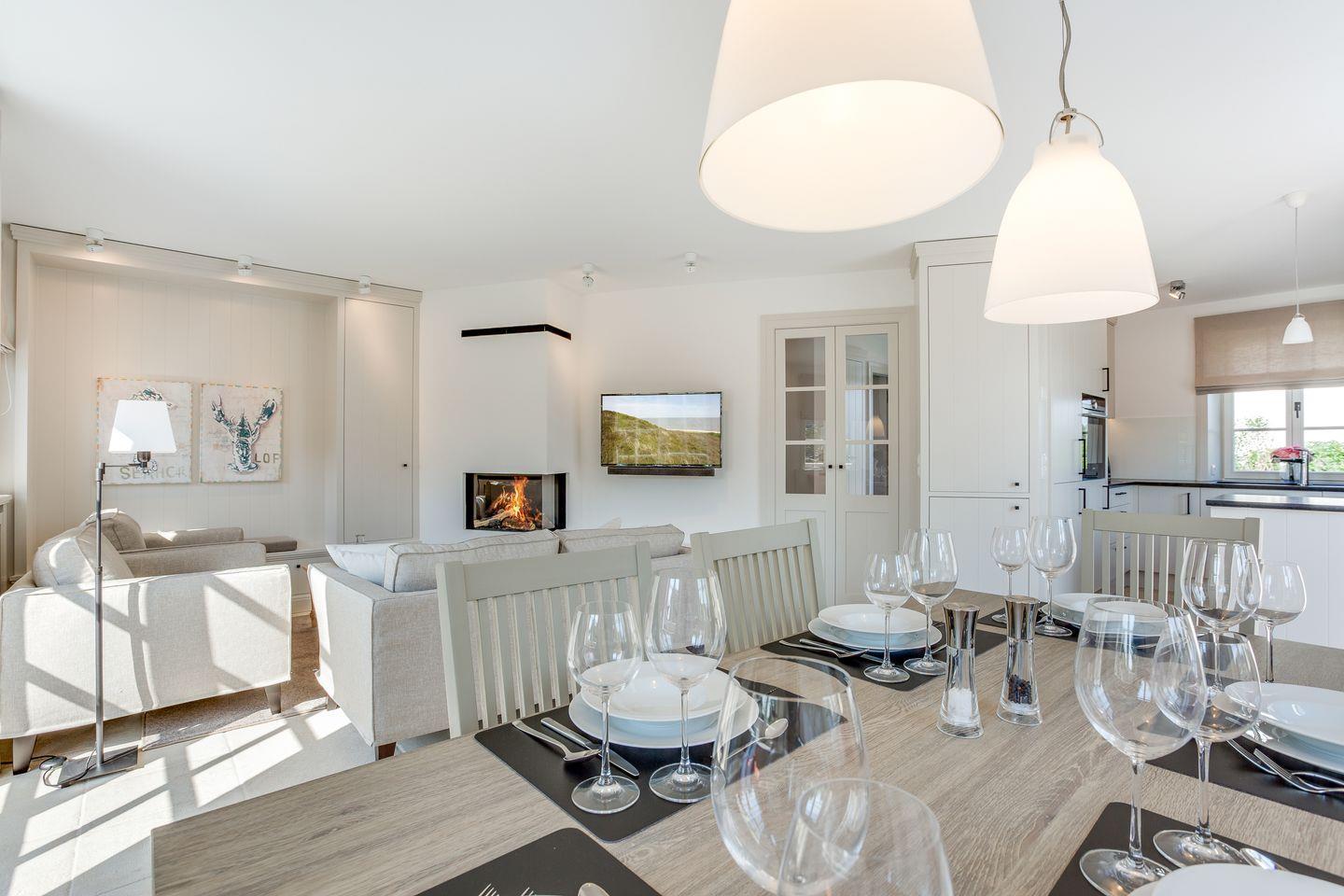 EG: Wohnbereich mit Flatscreen TV, Soundbar mit Bluetooth, Gaskamin, W-LAN, separate Küche mit Backofen, Induktionsherd, Geschirrspülmaschine, Nespresso Maschine, Gäste-WC, große Terrassen mit Strandkorb
