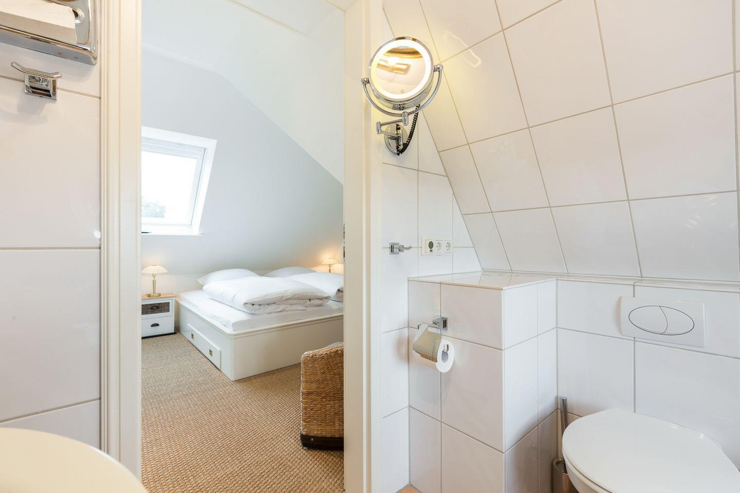 1 Schlafraum mit 2 getrennten Betten (90x200cm). Wohlfühl-Bad mit großzügiger Regenschauer-Dusche, Musikbeschallungsmöglichkeit und WC. Sonniger Westbalkon.