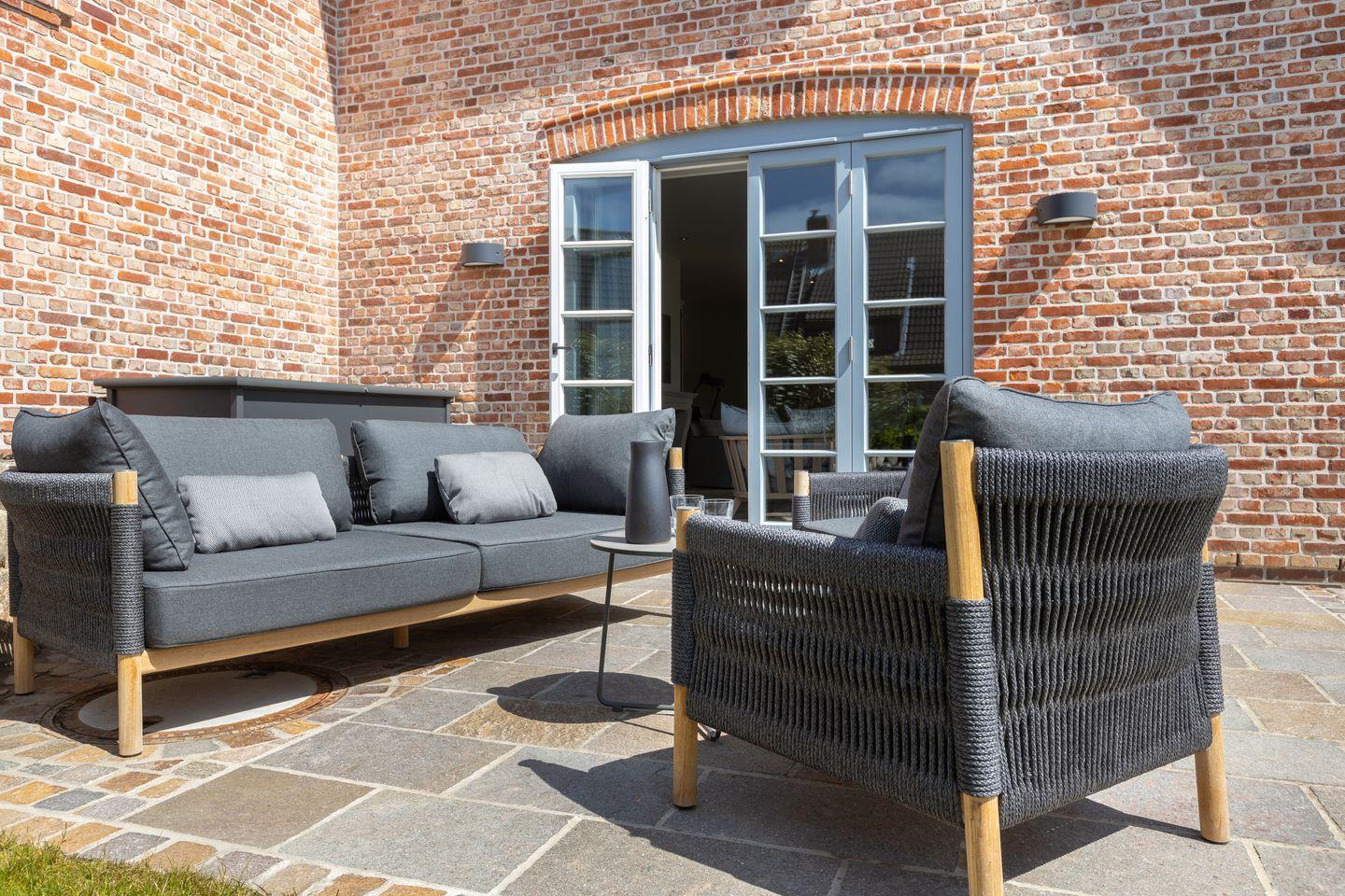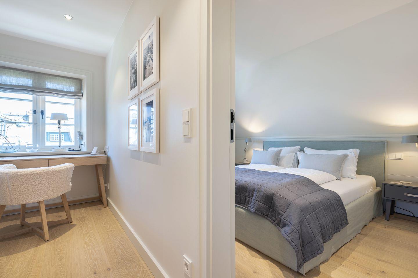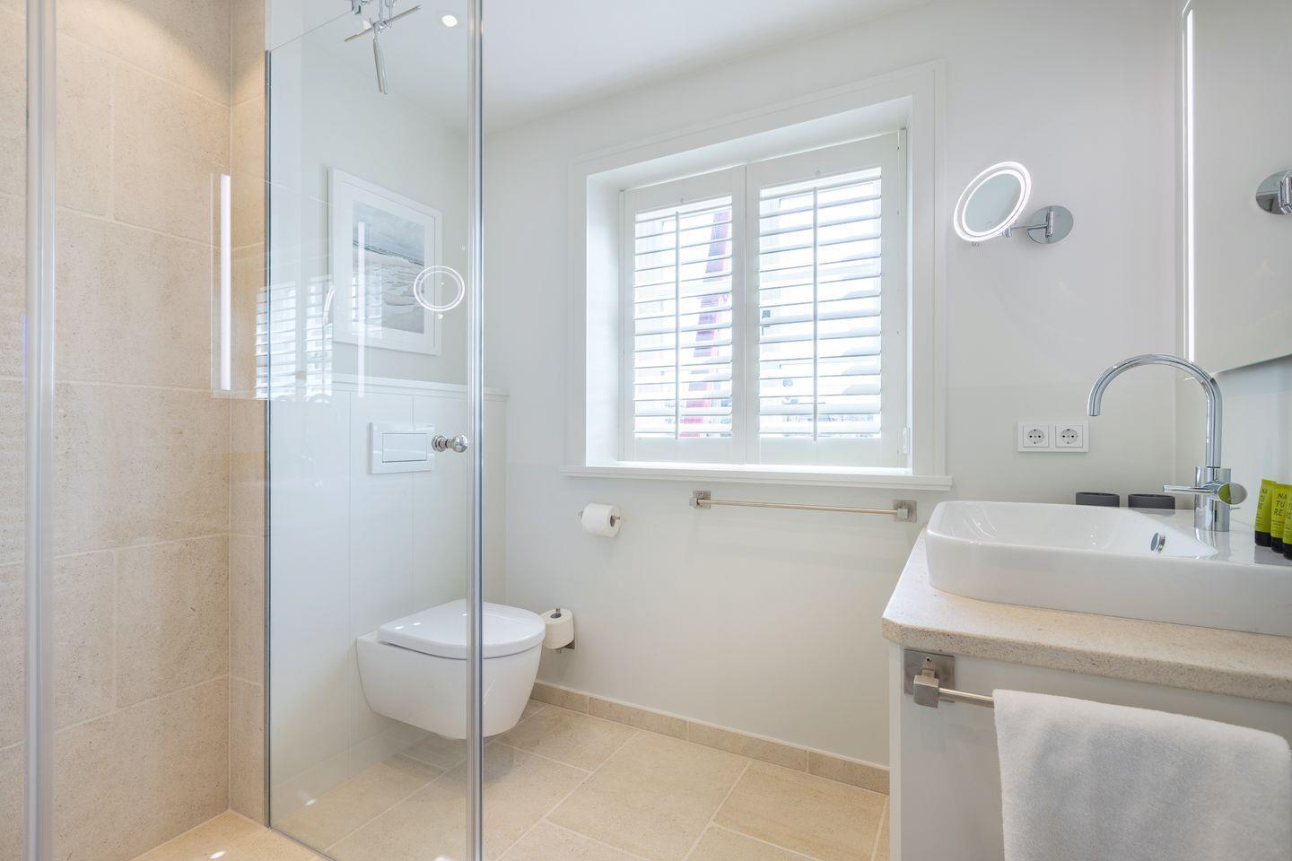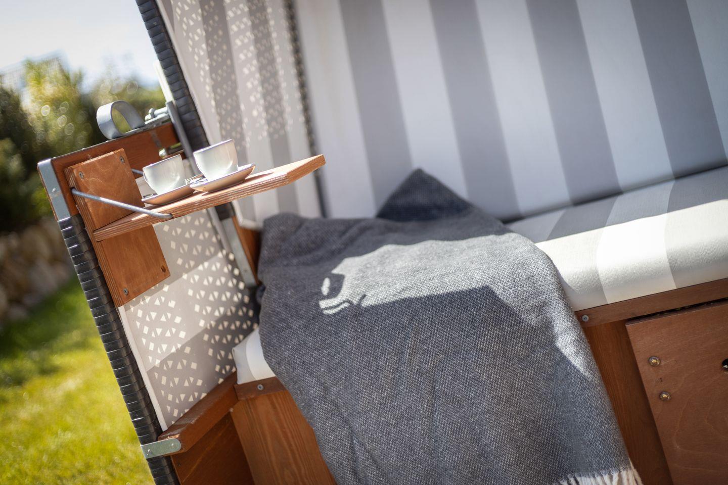 Vom Wohnbereich aus betreten Sie Ihren Garten mit zwei möblierten Terrassen und sylt-typischem Strandkorb. Auf gleicher Ebene befindet sich ein Gäste-WC.