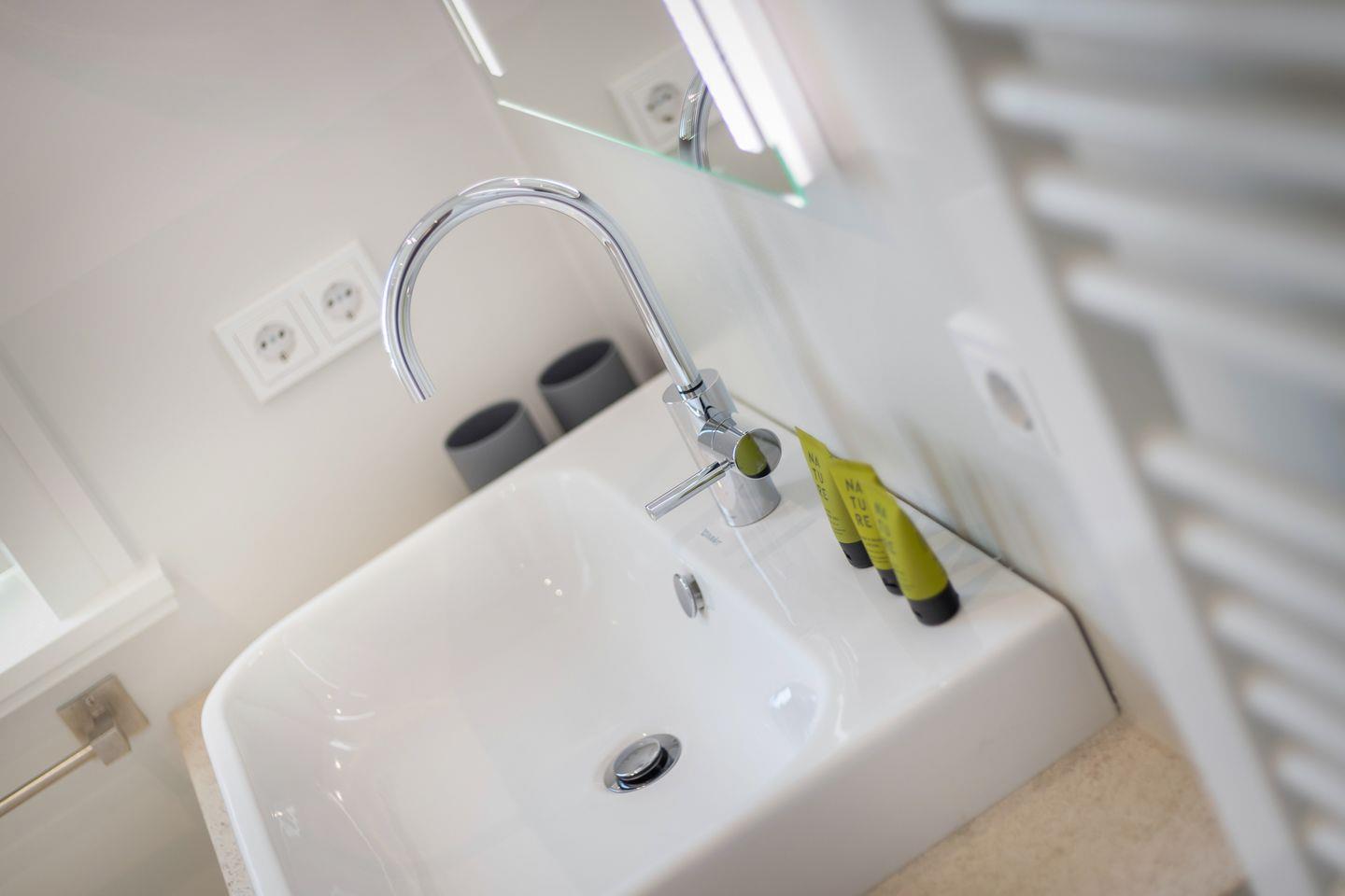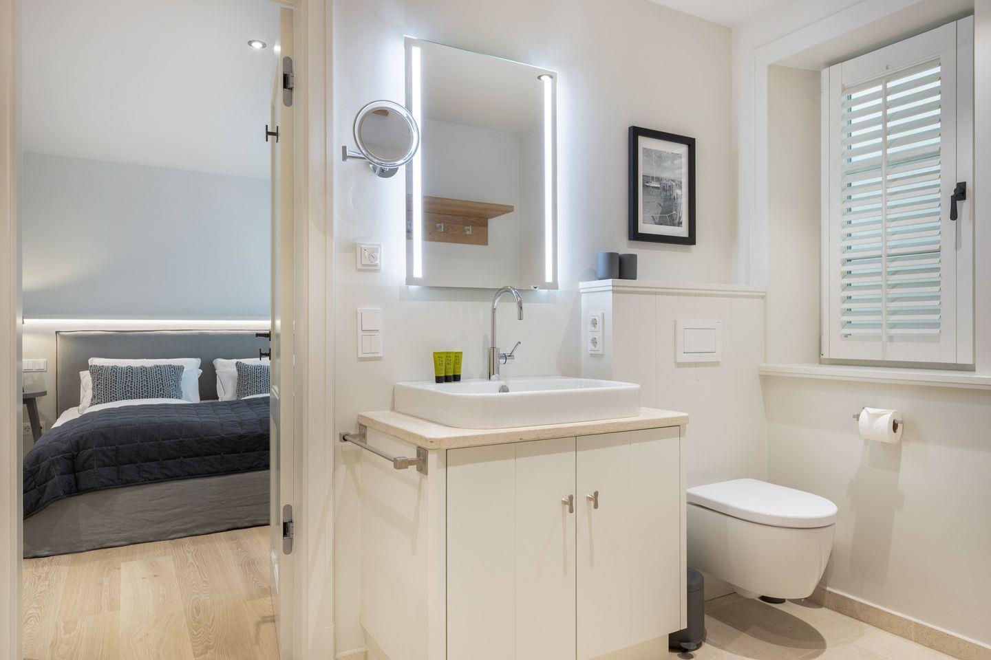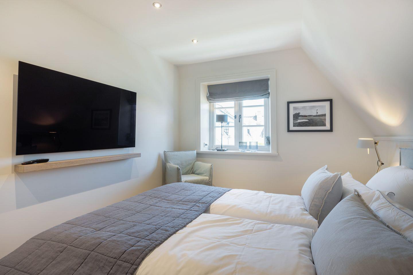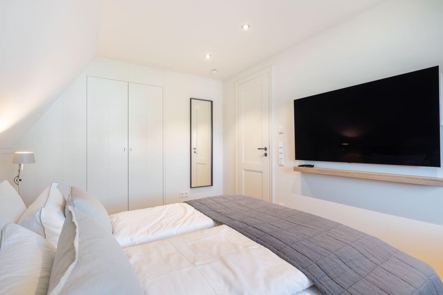 Im Obergeschoss des Hauses finden Sie zwei weitere Räume mit je einem Doppelbett und einem Flatscreen-TV sowie je einem eigenem Badezimmer.