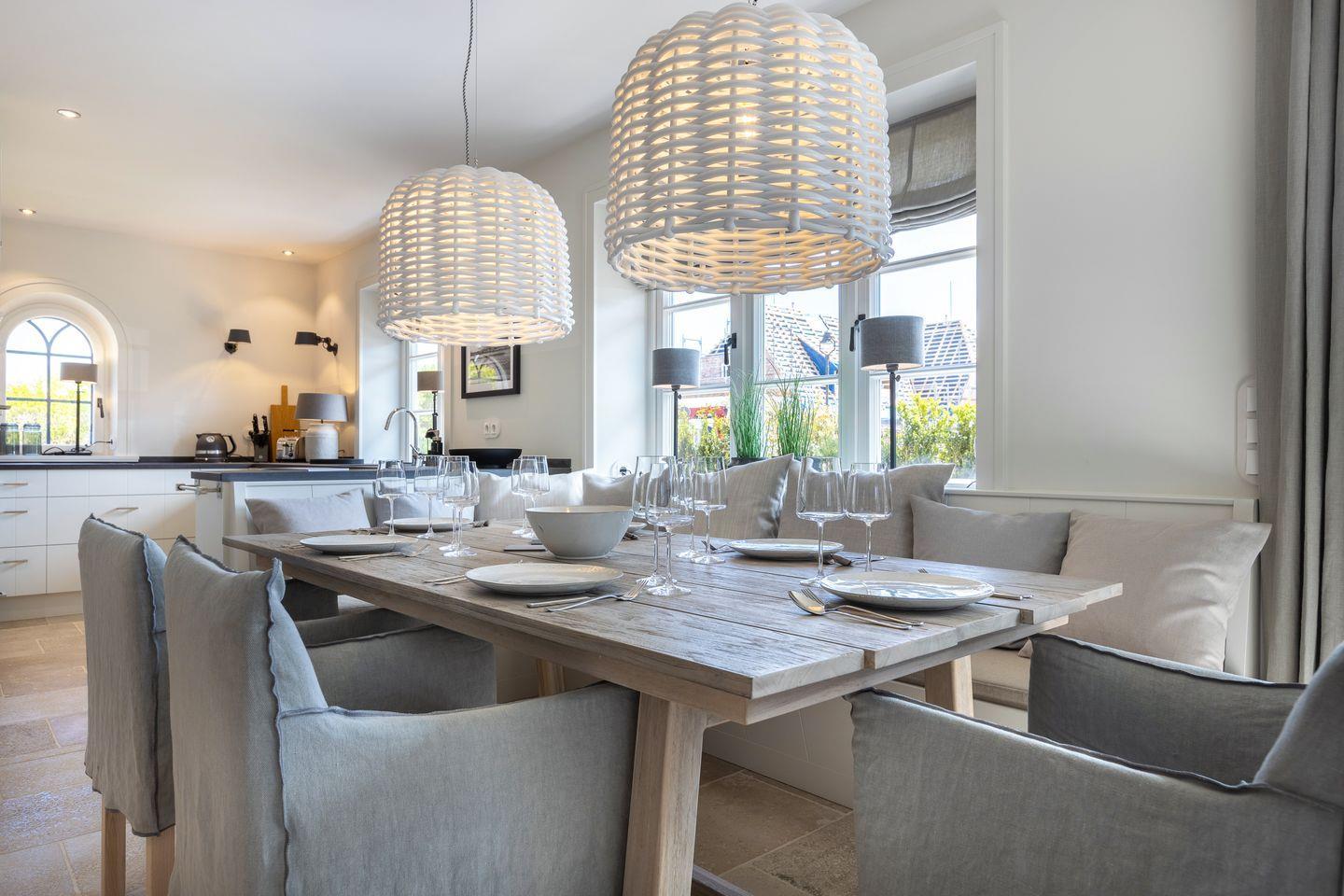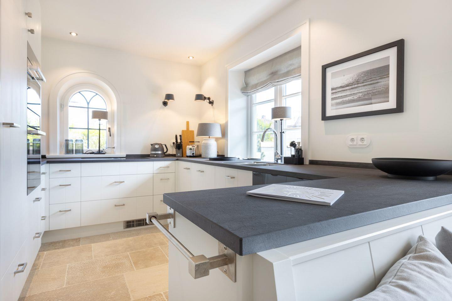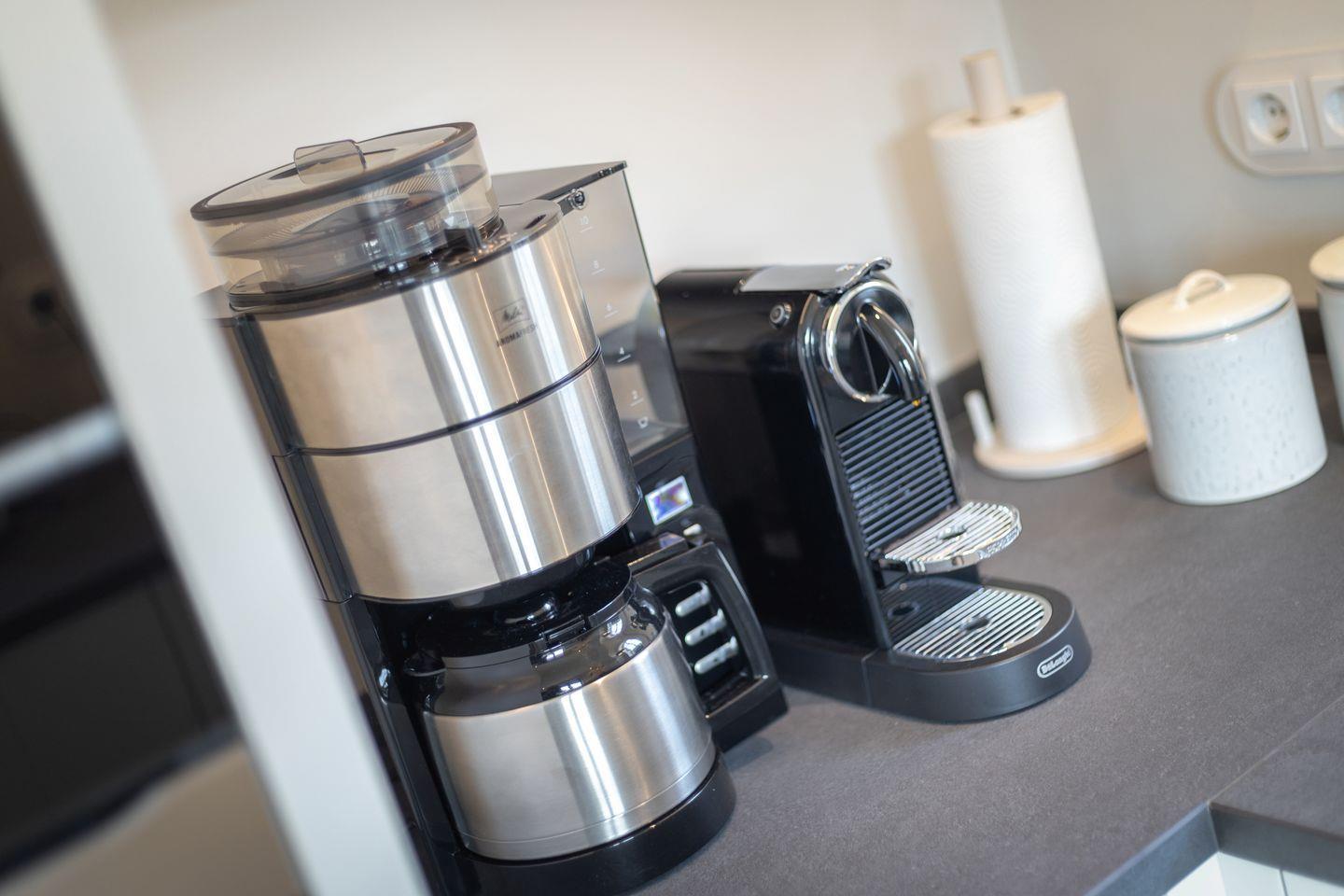 EG: Wohnraum mit Flatscreen-TV und Sound System, Arbeitsplatz, Kamin und Essbereich, offene Küche mit Geschirrspülmaschine, Kaffeemaschine (Nespresso), Induktionsherd, Wasserkocher, Toaster, Mikrowelle, Backofen, Kühlschrank und Weinkühler, Gäste-WC, zwei Terrassen, eigener Garten mit Süd bzw. Südwest Ausrichtung, Strandkorb (von April bis Oktober)