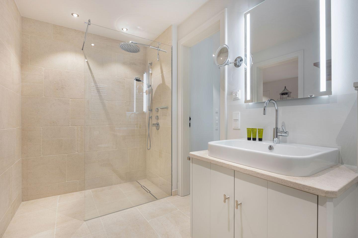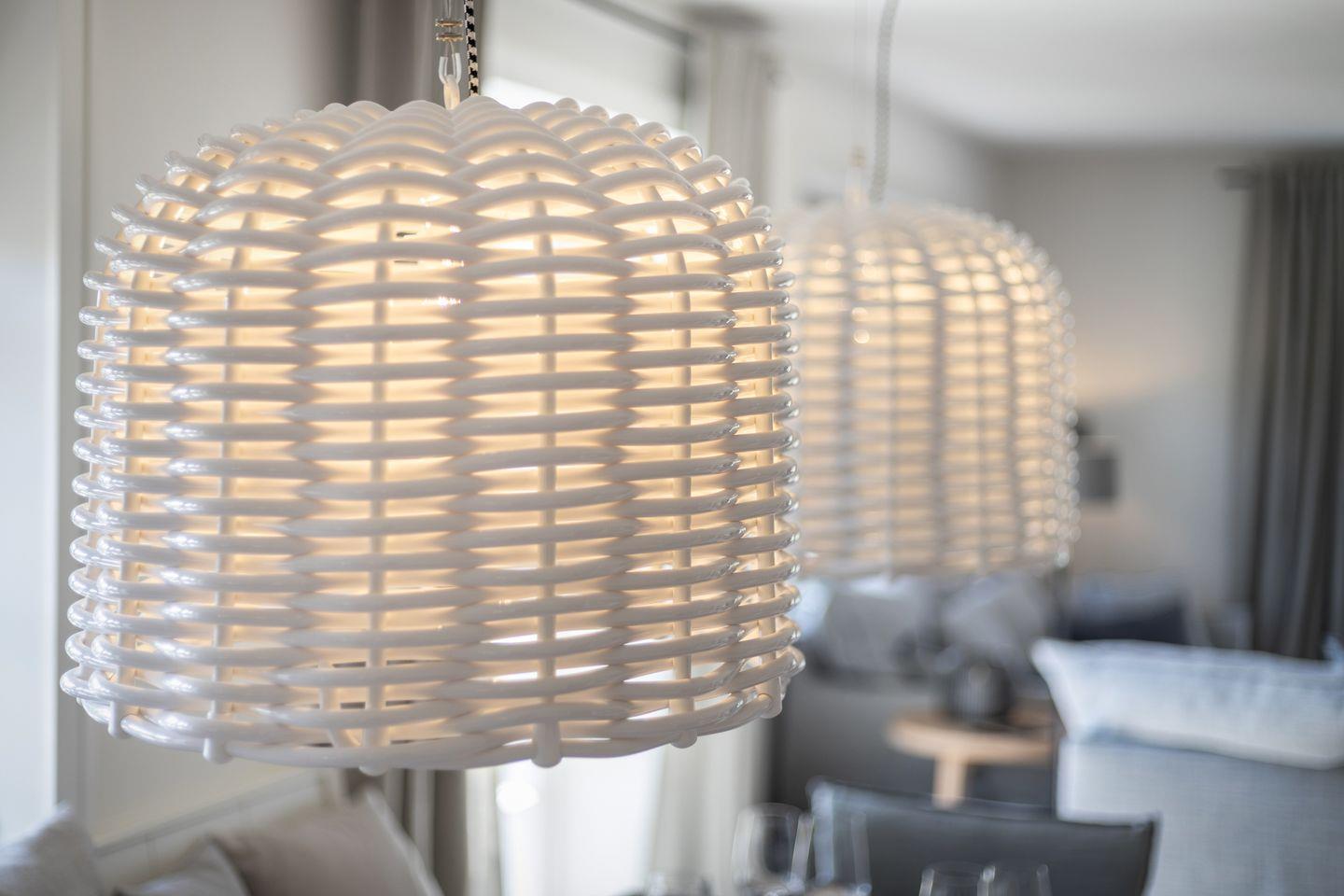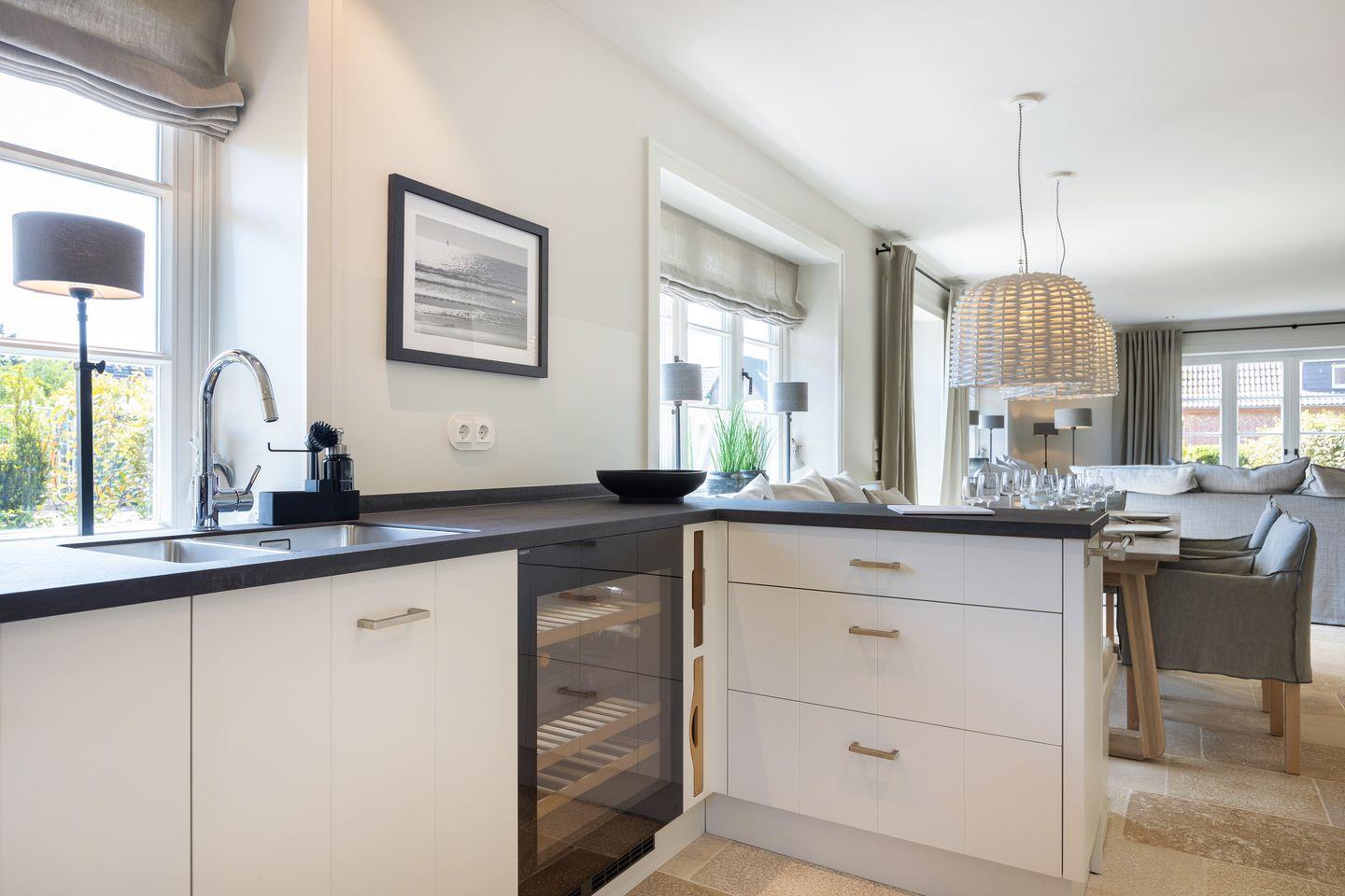 EG: Wohnraum mit Flatscreen-TV und Sound System, Arbeitsplatz, Kamin und Essbereich, offene Küche mit Geschirrspülmaschine, Kaffeemaschine (Nespresso), Induktionsherd, Wasserkocher, Toaster, Mikrowelle, Backofen, Kühlschrank und Weinkühler, Gäste-WC, zwei Terrassen, eigener Garten mit Süd bzw. Südwest Ausrichtung, Strandkorb (von April bis Oktober)