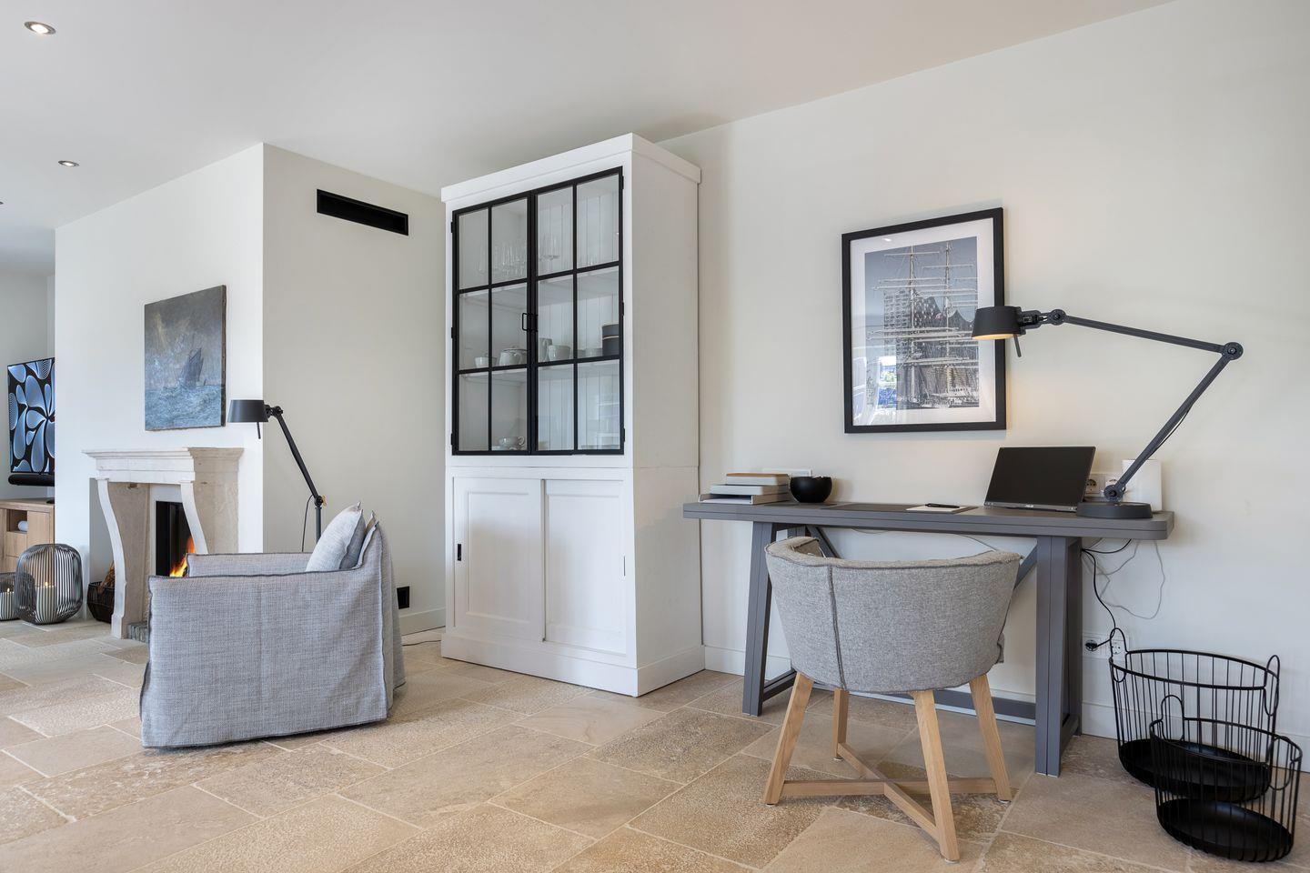 Der Wohnbereich des Hauses bietet Ihnen neben einer gemütlichen Sofalandschaft mit Blick auf den TV und Kamin auch eine offene Küche mit großzügigem Essbereich für bis zu sechs Personen. Sie müssen im Urlaub arbeiten? Schade! Aber natürlich kein Problem, an Ihrem „Urlaubsarbeitsplatz“.