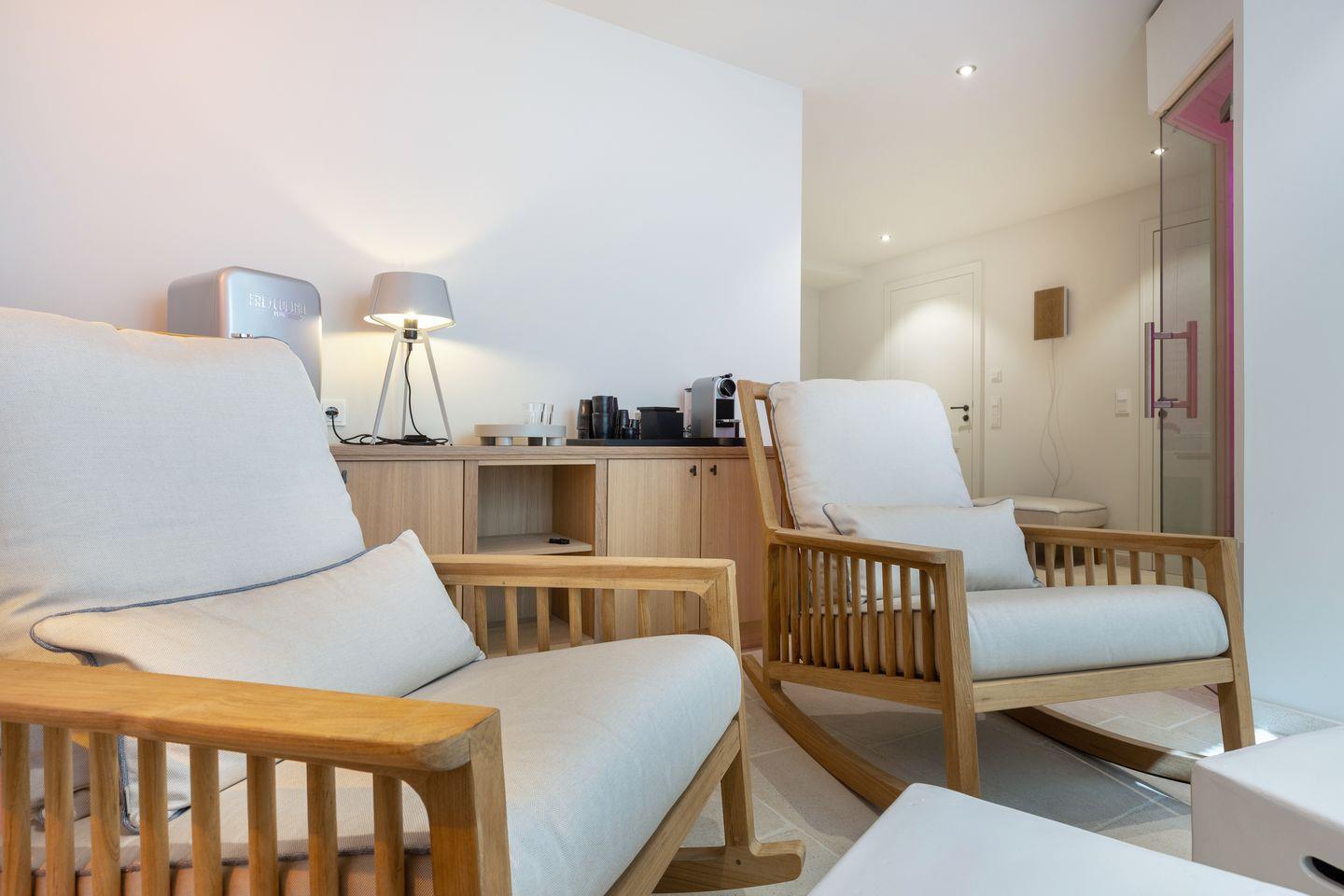 Im Untergeschoss erwartet Sie ein Raum mit Doppelbett und Flatscreen-TV sowie ein Badezimmer mit Dusche und WC. Außerdem können Sie hier, besonders in den Wintermonaten, Ihre Zeit in der eigenen Sauna genießen und den Alltagsstress für einen Moment hinter sich lassen.