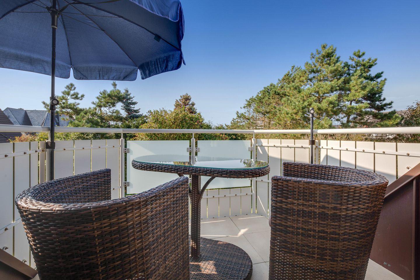 Ihr kleiner Balkon mit Blickrichtung zu den Wenninstedter Dünen lässt Sie das Meer rauschen hören. Wertiges Balkonmobiliar steht Ihnen von ca. April-Oktober zur Verfügung.