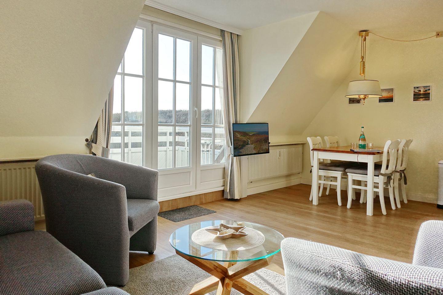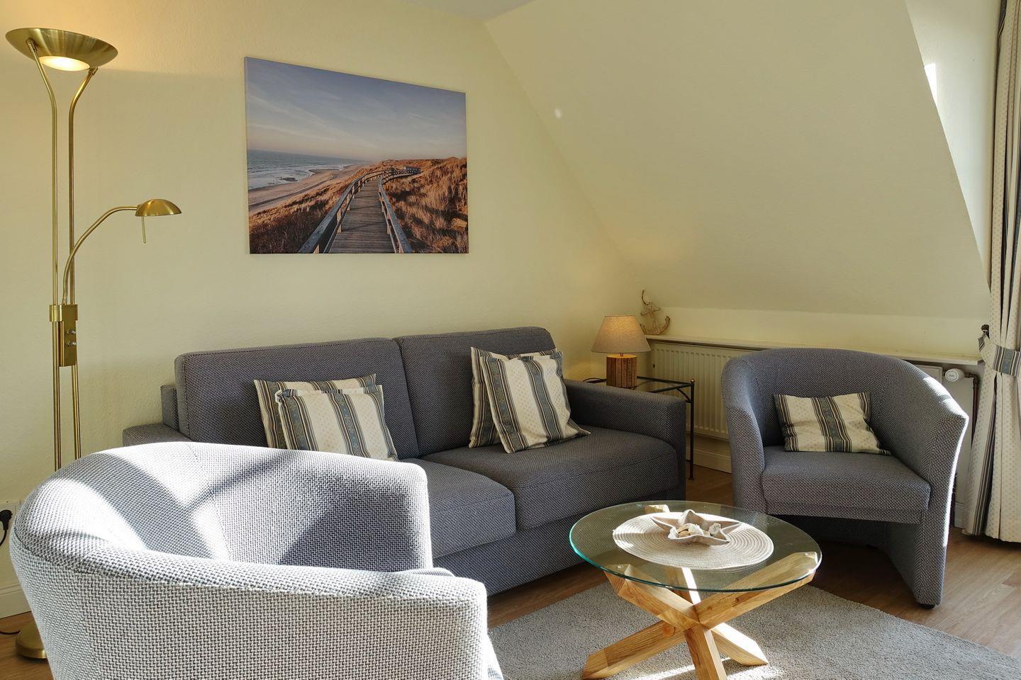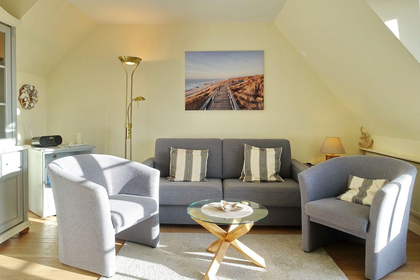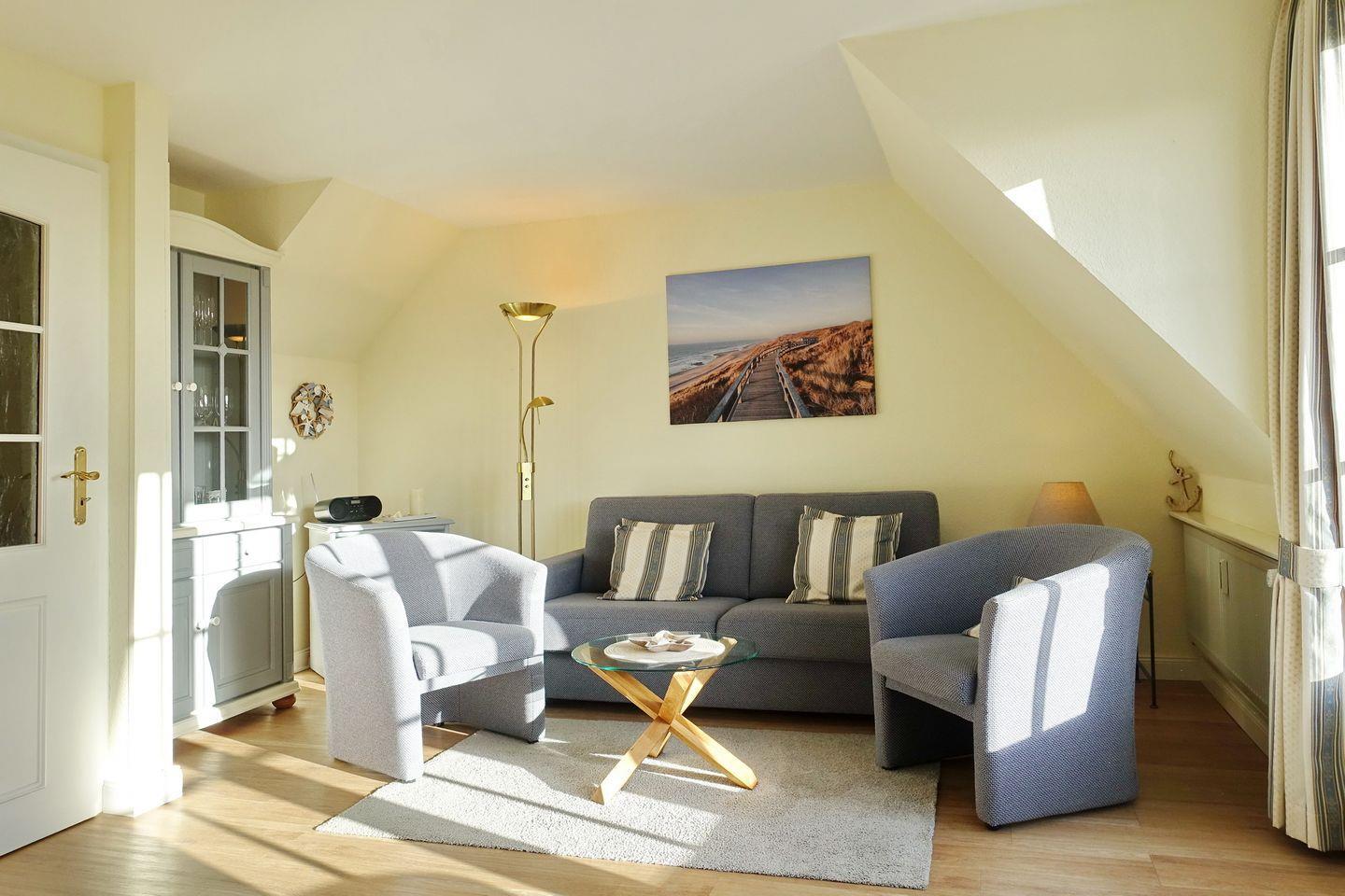 Komfortables 1-Raum Appartement unmittelbar in den Dünen gelegen, ca. 60 qm Nutzfläche im Ober- und Dachgeschoss.