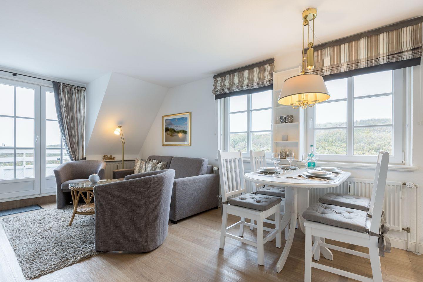 Komfortables 1-Raum Appartement unmittelbar in den Dünen gelegen, ca. 50 qm Nutzfläche im Ober- und Dachgeschoss.