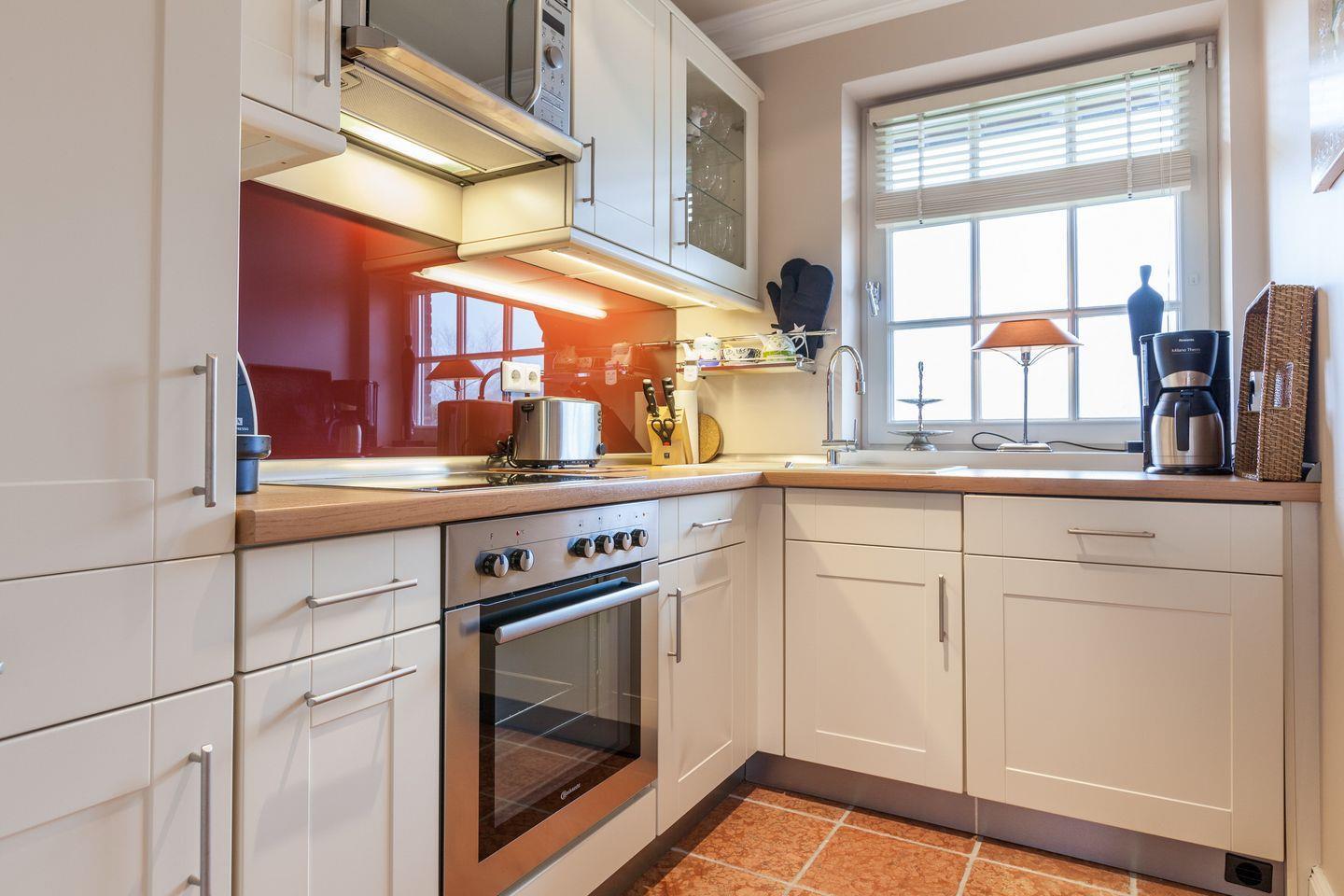 Die voll eingerichtete, separate Küche verfügt über Geschirrspüler, Backofen, Microwelle, Induktionskochfeld, Espressomaschine und Nespressomaschine und eine zusätzliche Filterkaffee-Maschine.
