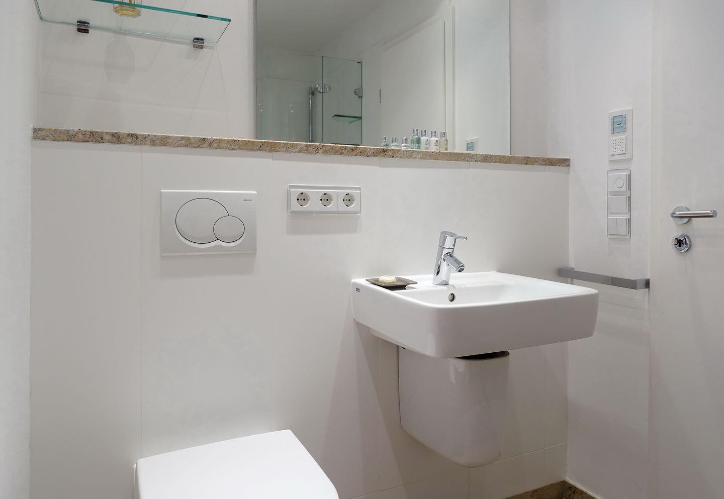 Souterrain: 1 großzügiger Raum mit Doppelbett (2x100x200cm) mit viel Schrankplatz und Flatscreen-TV. 1 weiterer Raum mit Doppelbett (2x90x200cm)), TV, Playstation 4. 1 großes und helles Wohlfühlbad mit Doppelwaschtisch, Wanne/Dusche/WC, Gira Unterputzradio und Waschmaschine/ Trockner. Zweites Bad mit Dusche, WC und Gira Unterputzradio. Im gesamten Souterrain hochwertiger Parkett mit Fußbodenheizung.