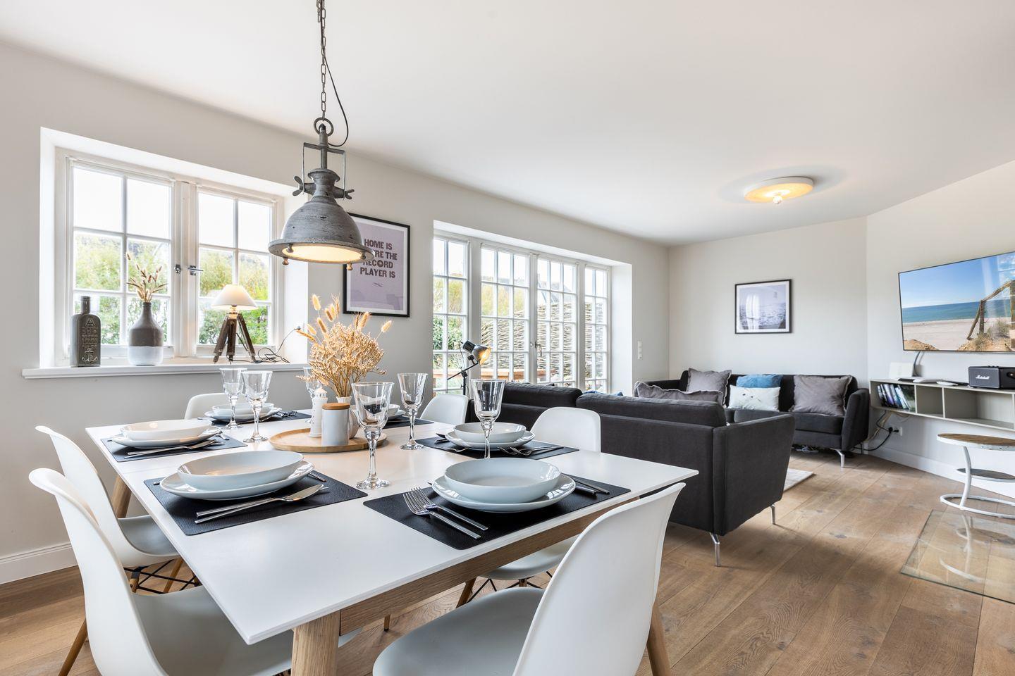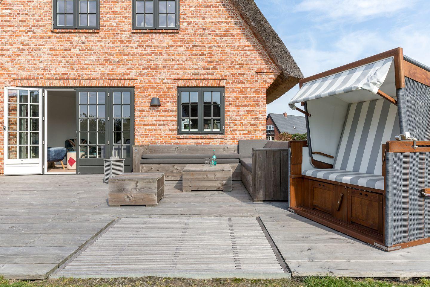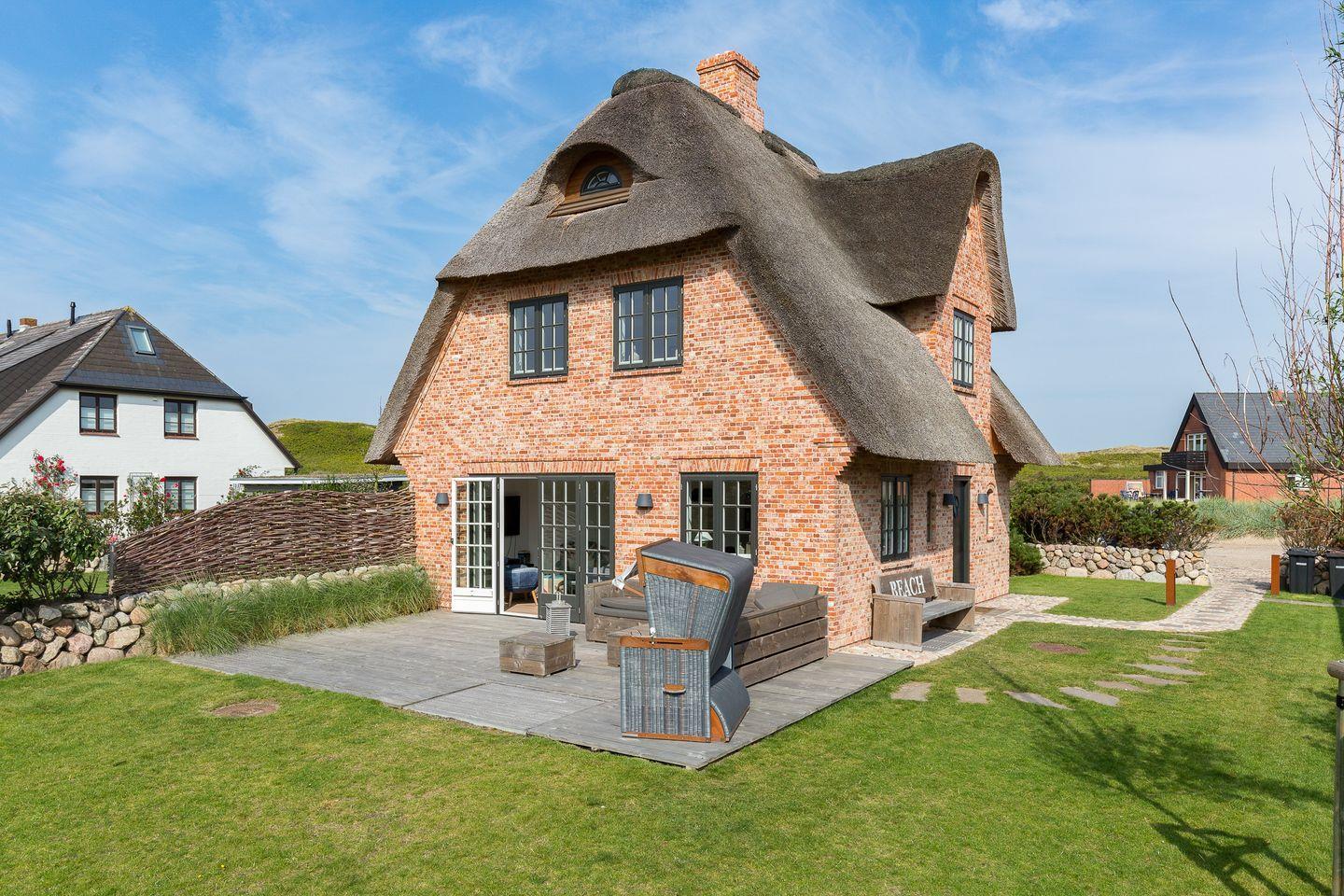 Genießen Sie Komfort und Sauna im Ferienhaus Tom Kyle, nur 200 m vom Strand in Wenningstedt auf Sylt entfernt.