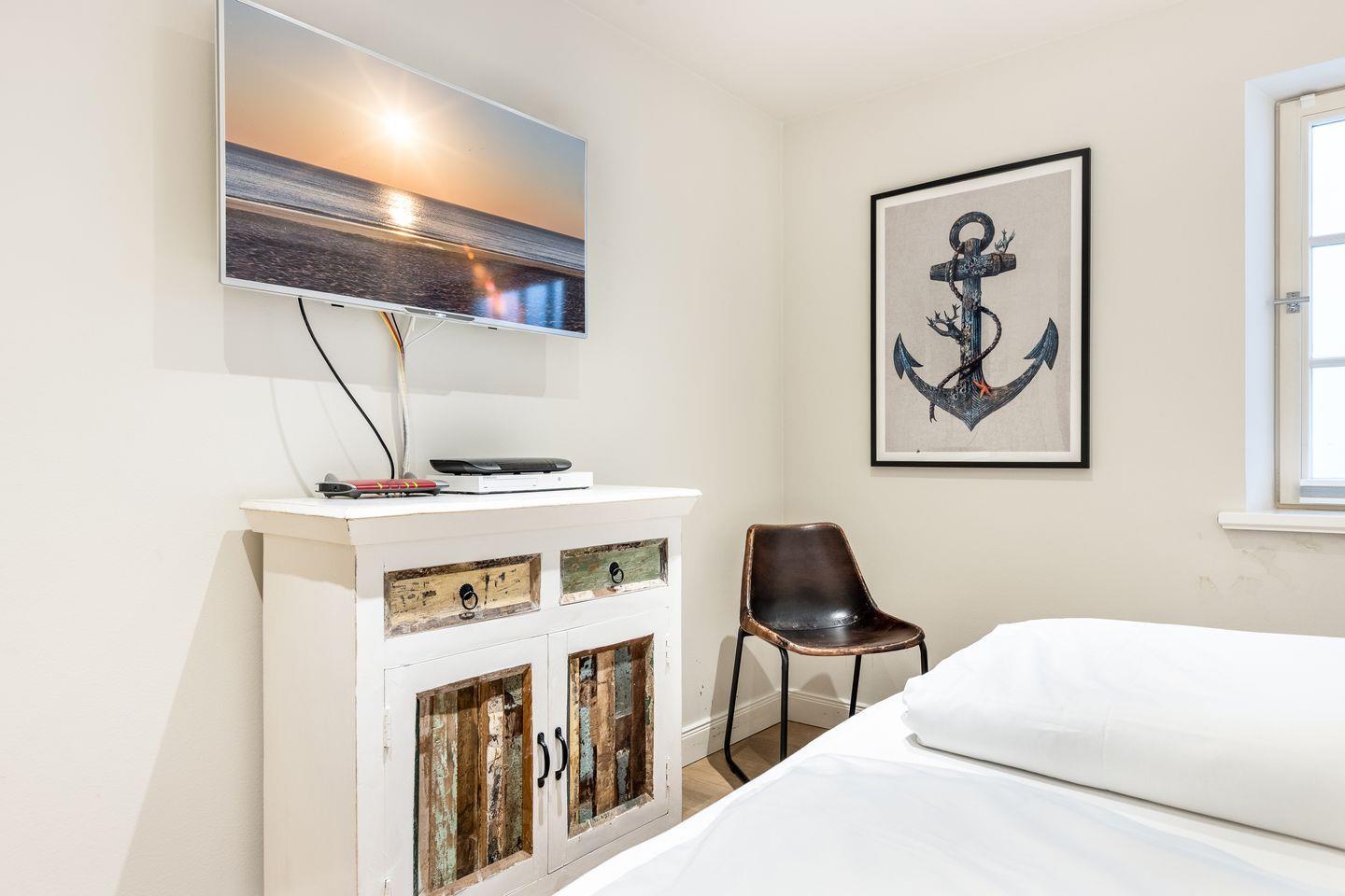 DG: ein Raum mit zwei Einzelbetten (90x200cm) und Flatscreen-TV