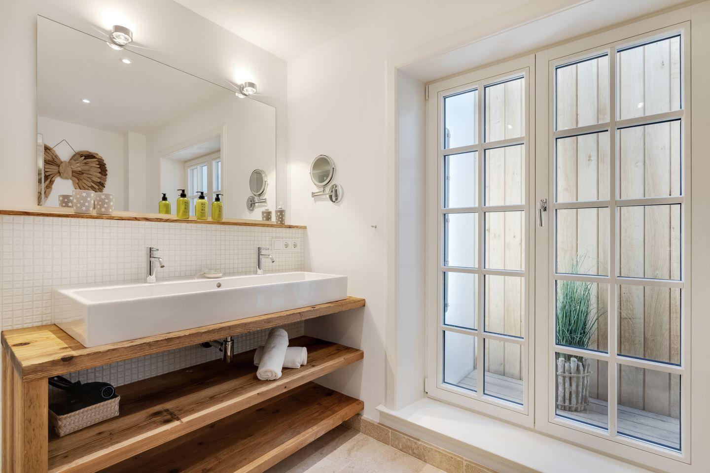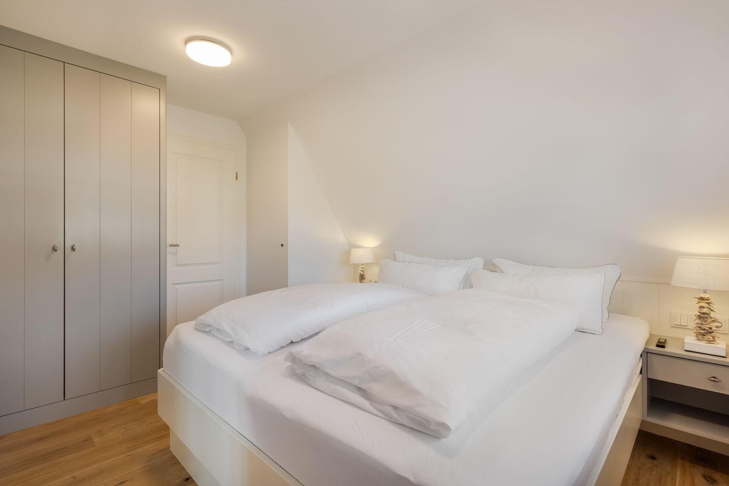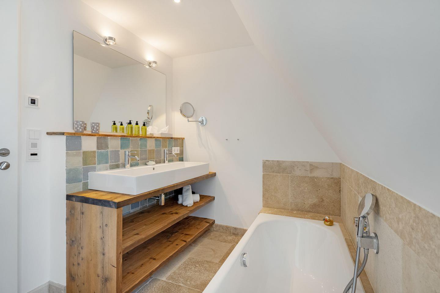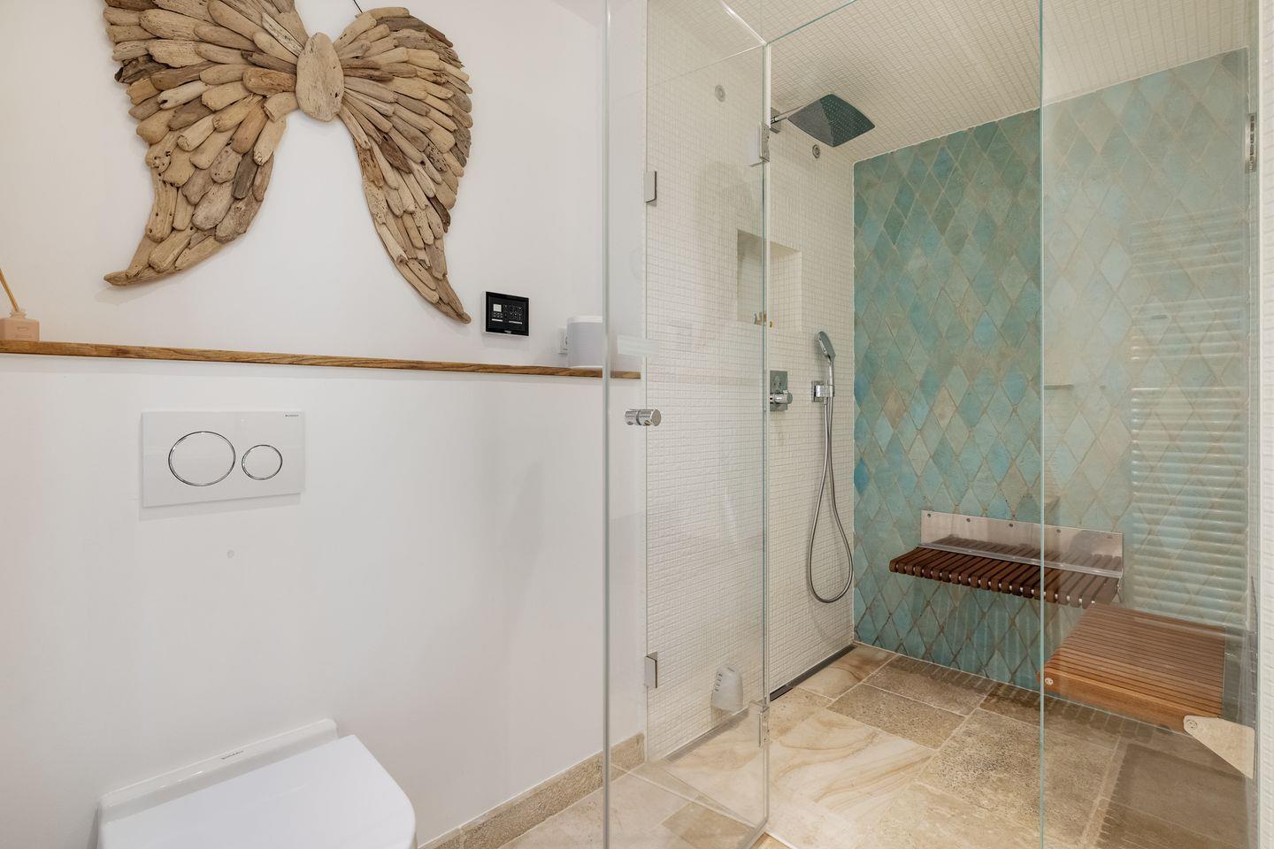 Das Untergeschoss des Hauses verfügt über zwei stilvoll eingerichtete Räume mit je einem Doppel-Boxspringbett (eines mit Übergröße 210x200cm) und Flatscreen-TV. Ein weiteres Highlight im Untergeschoss des Hauses ist eine private Dampfsauna, die mit der Dusche im Badezimmer kombiniert ist. Im Obergeschoss finden Sie zwei weitere Schlafzimmer, eines mit Doppelbett und eines mit Einzelbett. Außerdem befinden sich auf dieser Ebene zwei weitere Bäder, eines davon mit Badewanne und Dusche. Das Dachgeschoss des Hauses kann als Lese- oder Arbeitszimmer genutzt werden, es verfügt über einen Schreibtisch und einen Sessel mit Fußbank, der als Ruhepol zum Verweilen einlädt.