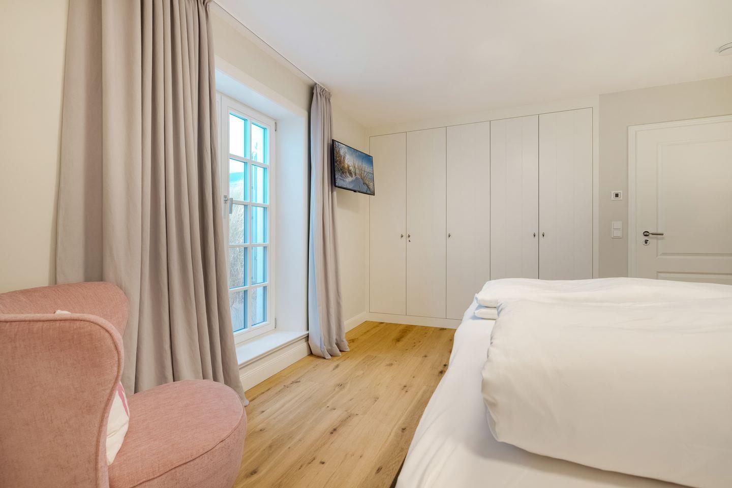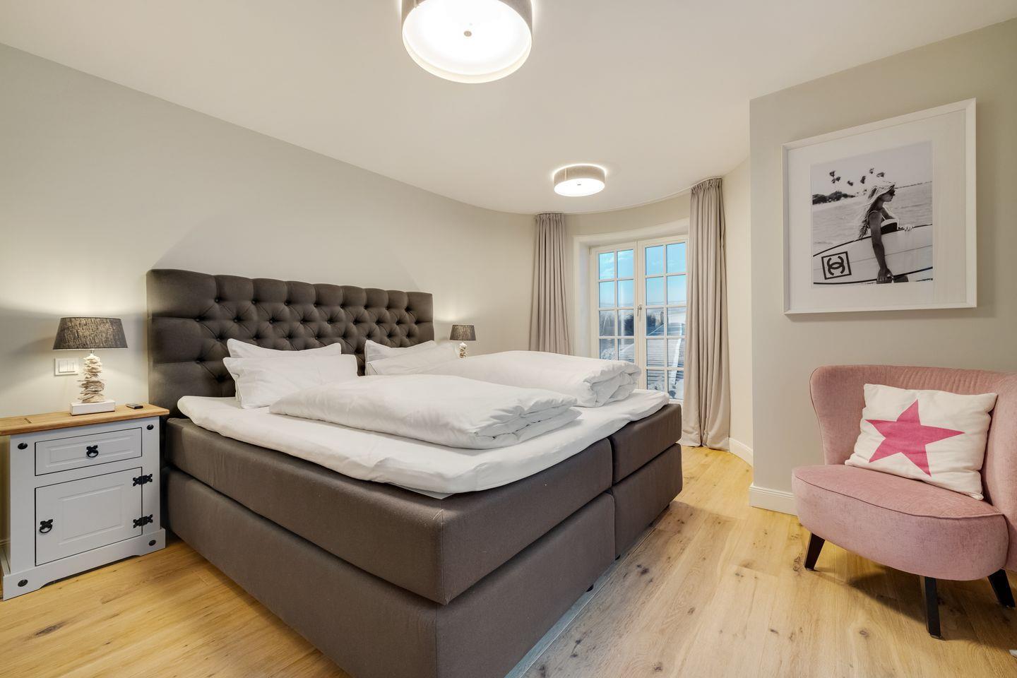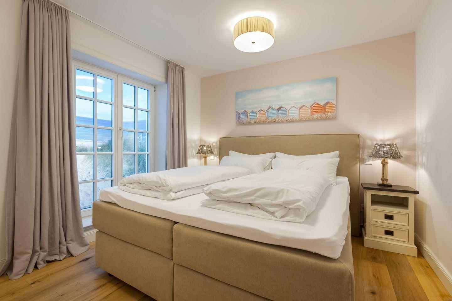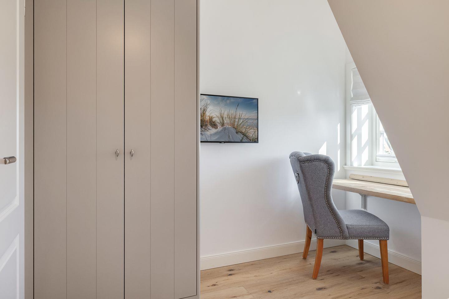 Vom Wohnbereich aus betreten Sie Ihren eigenen Garten mit Terrasse, die von April bis Oktober möbliert ist. Ein original Sylter Strandkorb und zwei Sonnenliegen stehen Ihnen ebenso zur Verfügung. Auf gleicher Ebene zum Wohnbereich finden Sie außerdem ein Gäste-WC.