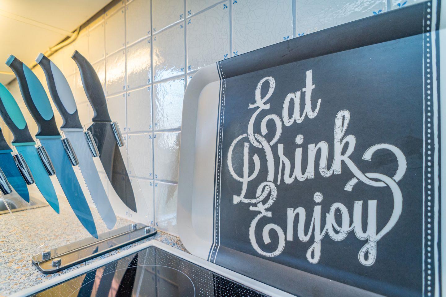 Die gesamte Ausstattung ist hochwertig. Vom Mobiliar über die Lichtgestaltung bis zu den Objekten in Küche und Bad ist ein stimmiges Design-Ambiente entstanden. Die offene Struktur des Wohnraums mit Küchenzeile, Ess- und Loungebereich lädt zum Kochen und Beisammensein ein.