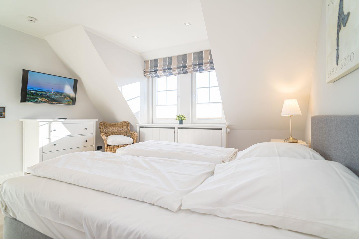 Die beiden Schlafzimmer befinden sich im Ober- bzw. Dachgeschoss und verfügen über komfortable Boxspringetten (1 x Doppelbett, 2 x Einzelbett) und schallisolierte Fenster.