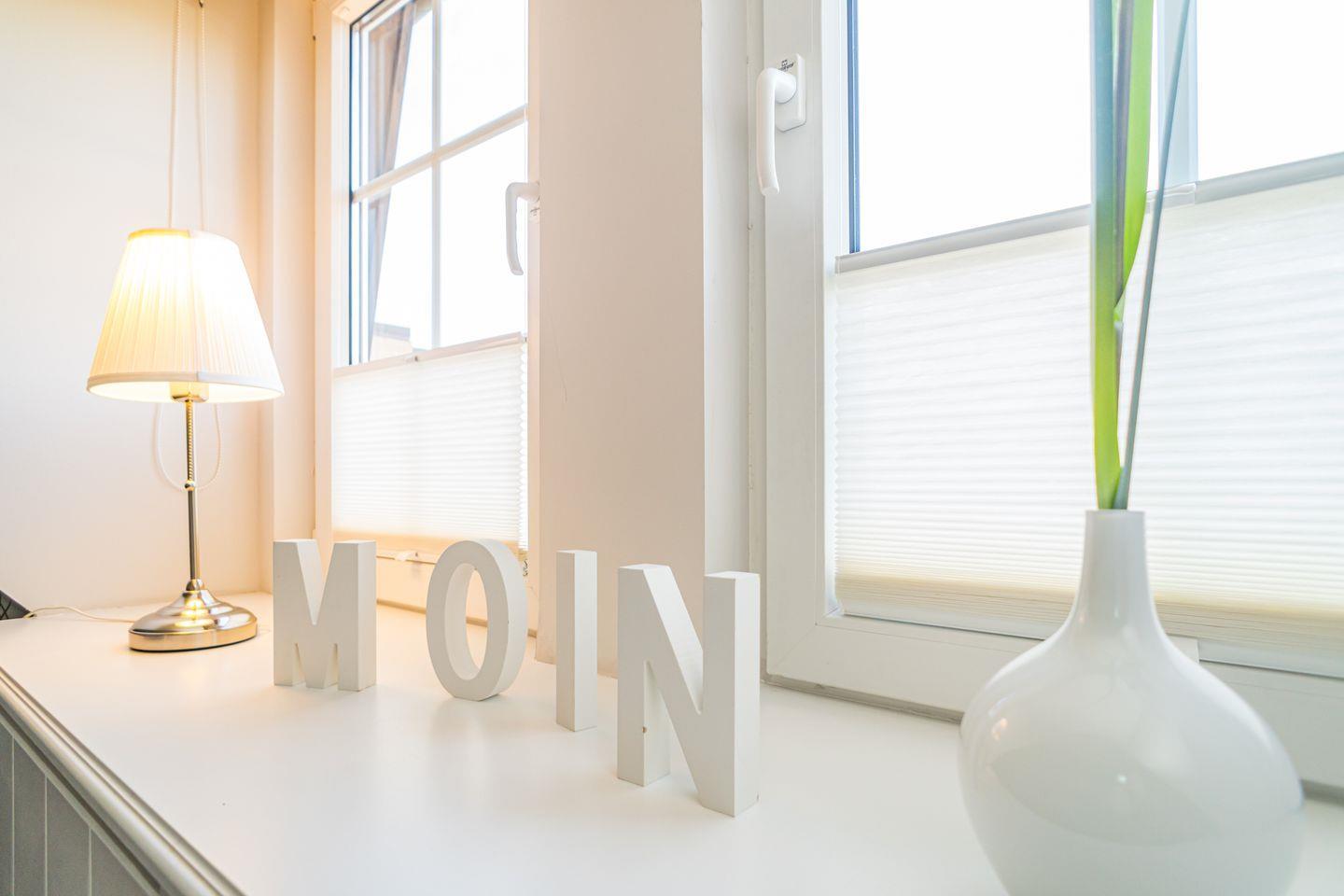 Die gekreideten Töne der Eichendielen ziehen sich durch alle Räumen und sorgen so für eine warme Atmosphäre. Helle Holzarbeiten und stilsichere Farbgestaltung verschaffen dabei eine behagliche Gemütlichkeit, die den nordischen Charakter dieses Appartements im Sylter Strandhaus Look prägt.