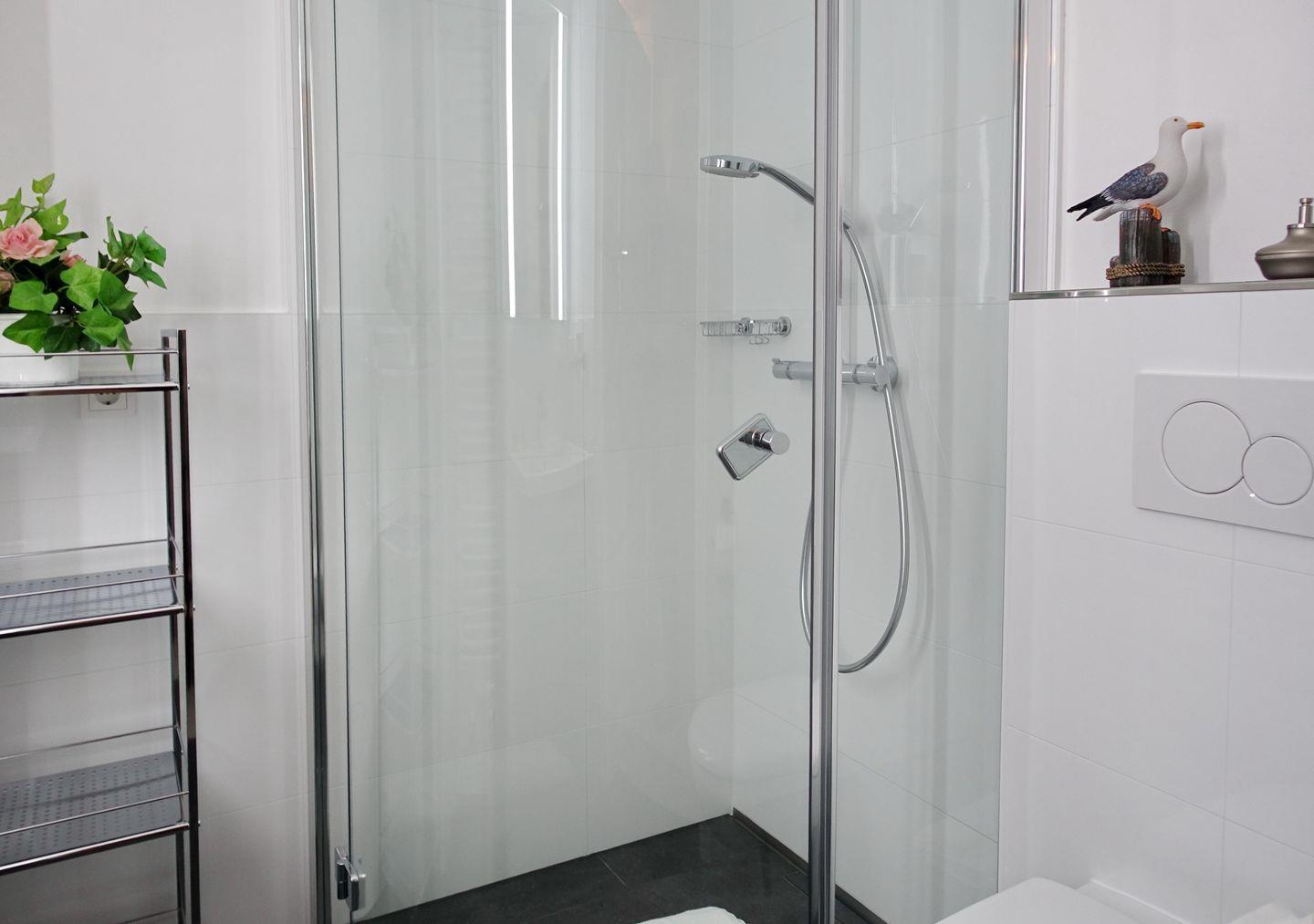 Der Wohnraum des Domizils bietet Ihnen eine große Couchecke zum Entspannen und durch die bodentiefen Fenster fällt viel Licht in das Wohnzimmer. Am geräumigen Esstisch können Sie Ihre Urlaubsleckereien genießen und die offene Küche bietet Ihnen mit ihrer vollen Ausstattung alles, was das Urlaubsherz begehrt. Vom Wohnraum aus betreten Sie Ihre sonnige Süd-Terrasse, die von April bis Oktober möbliert ist. Im Erdgeschoss der Wohnung finden Sie außerdem ein Gäste-WC.