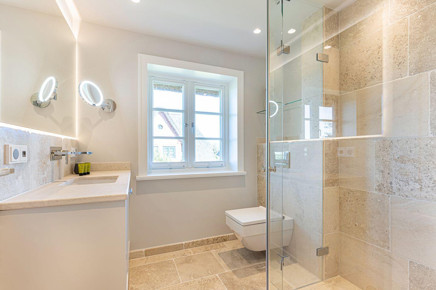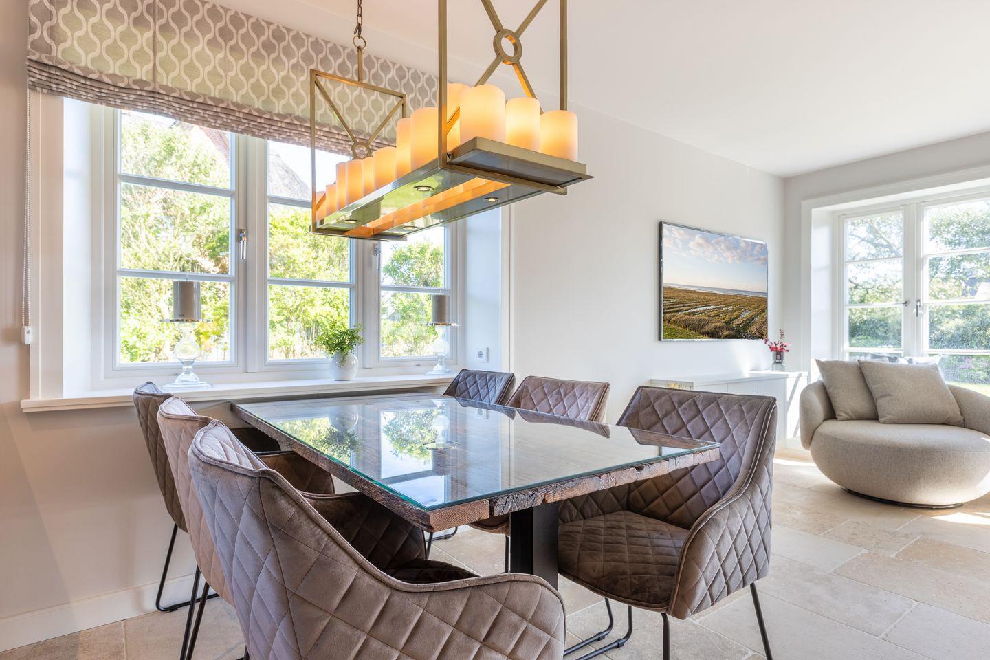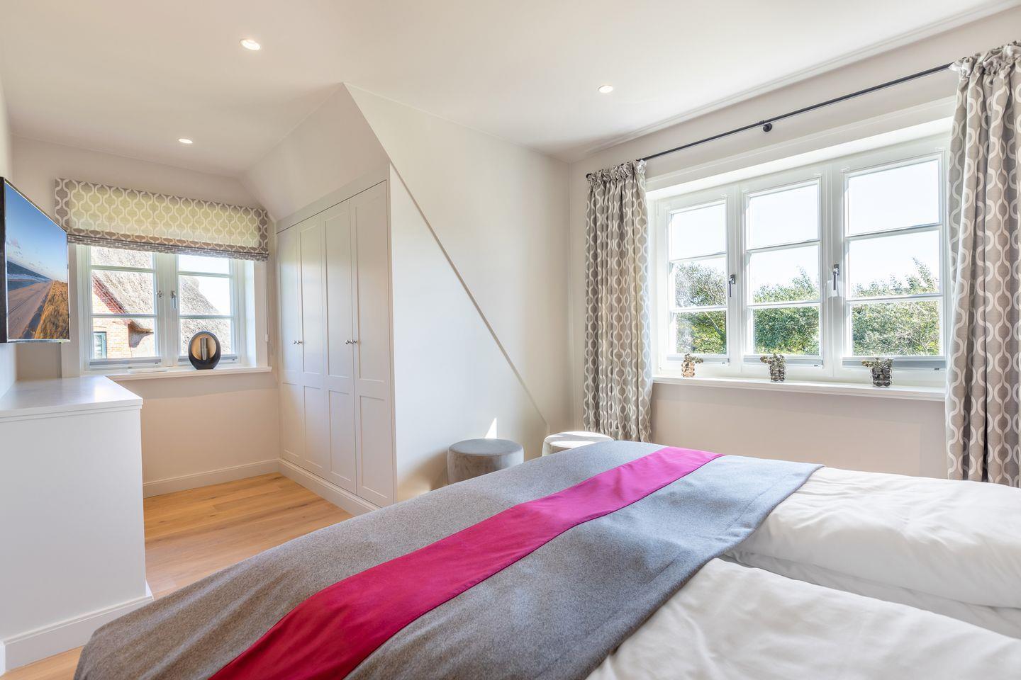 Dieses neu gebaute Hausteil mit 140qm in unmittelbarer Nähe des Dorfteiches in Wenningstedt bietet bis zu 6 Personen ausreichend Platz. Von hier aus kann man bequem mit dem Fahrrad durch die Wiesen in Richtung Kampen fahren. Es liegt in einer privaten und ruhigen Lage direkt am Naturschutzgebiet mit einem Blick auf Heide und Düne. Diverse Einkaufsmöglichkeiten und Restaurants befinden sich in der Nähe. "Mien Leev" - Meine Liebe, ist hier wörtlich zu nehmen, die "Liebe" findet sich im kleinsten Detail wieder.