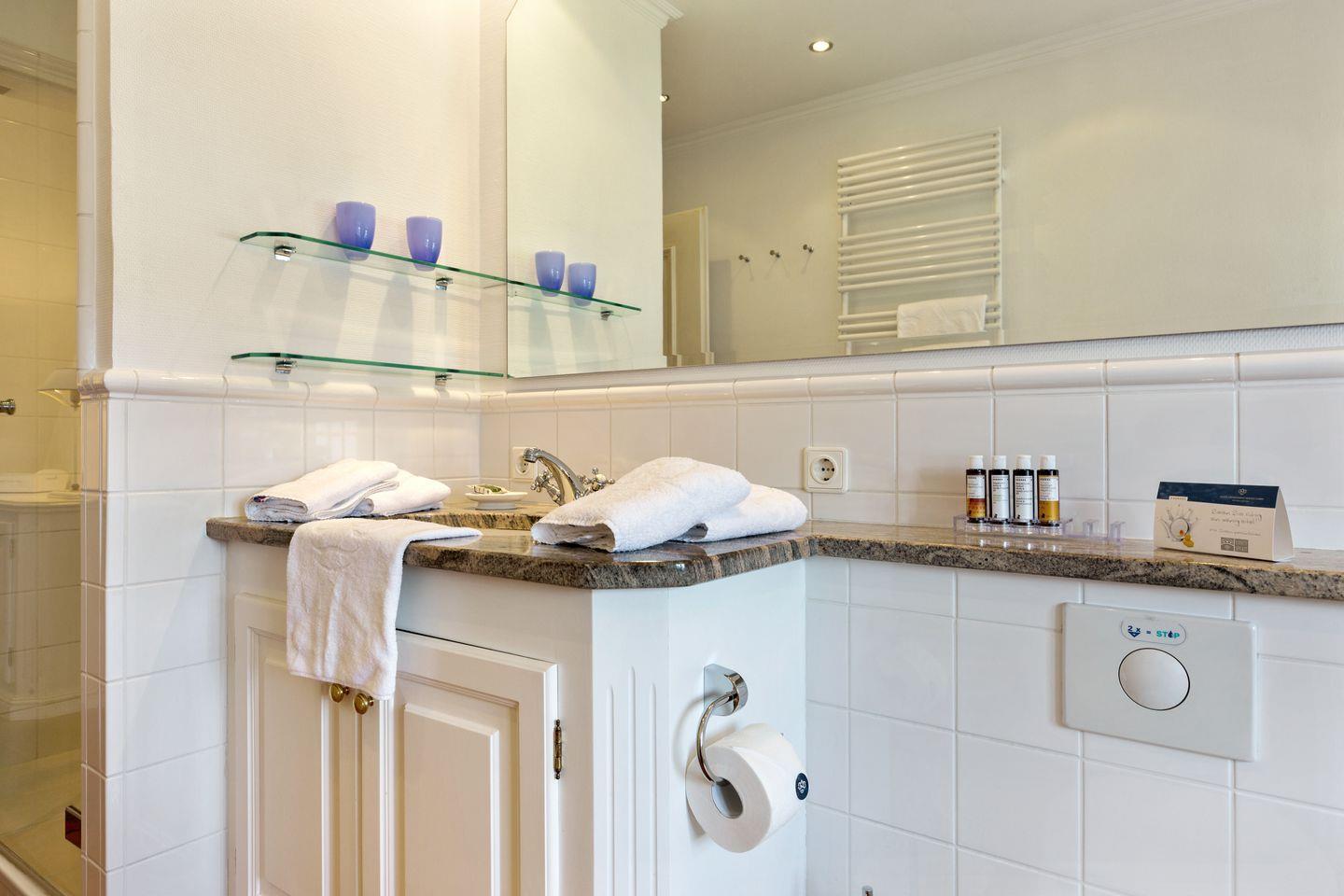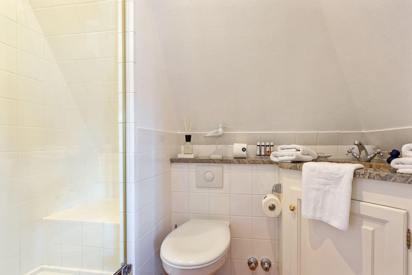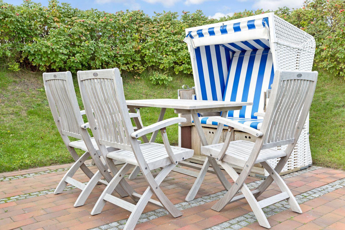 Wohnraum mit Flatscreen-TV, Radio, CD, DVD, iPod-Dockingstation sowie WLAN und Telefon inklusive Flatrate ins Festnetz der dt. Telekom. Küche mit Microwellen-Backofen-Kombination. Bad mit Dusche und WC sowie Gäste-WC. Ein weiteres Bad mit Badewanne, Dusche und WC. Garten mit Gartenmöbeln und Strandkorb (ca. April - Oktober).