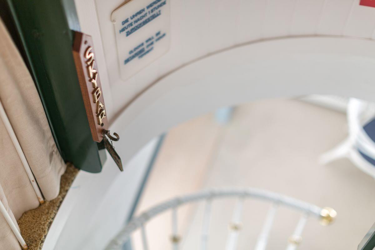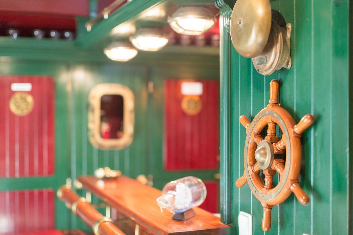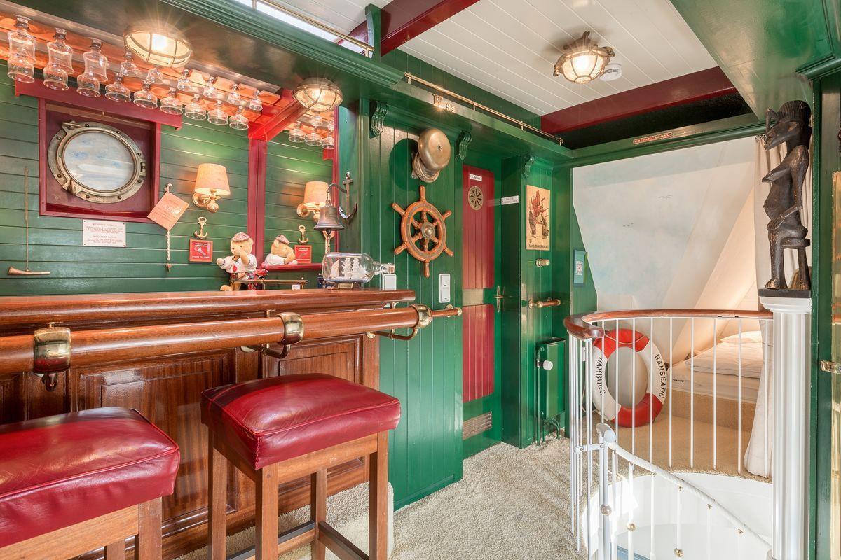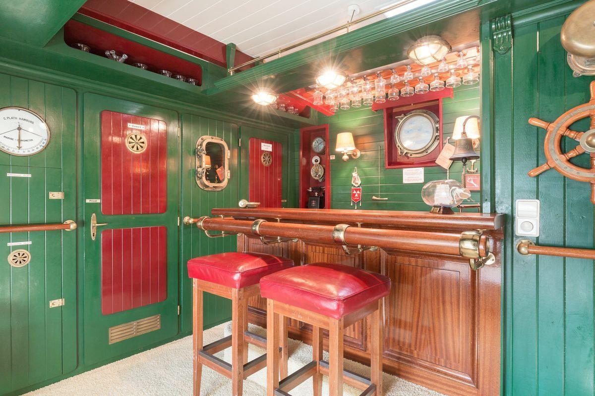 DG: Hier erwartet Sie Ihre eigene Bar, kunstvoll im Stile einer Schiffsbar von kundiger Tischlerhand gestaltet. Entdecken Sie zahlreich originale Accessoires ehemaliger Kreuzfahrtschiffe - Atmosphäre pur ! Ein Einzelbett - ideal für Ihr Kind. Weitere 2 kojenartige Einbaueinzelbetten. WC.