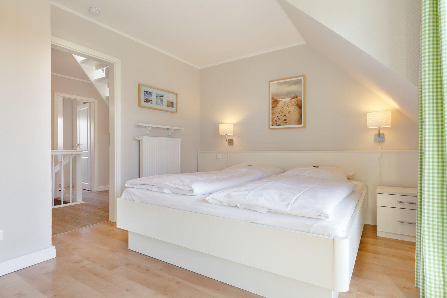 Obergeschoss: Schlafzimmer mit Doppelbett (180x200) und Südbalkon;