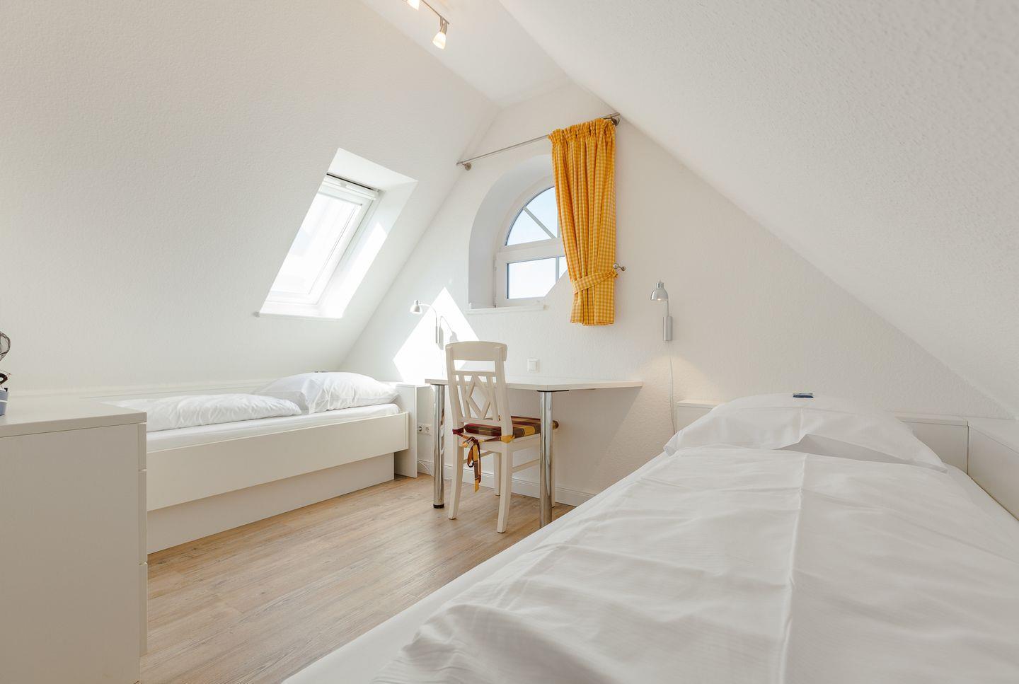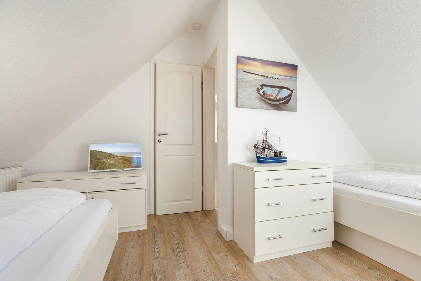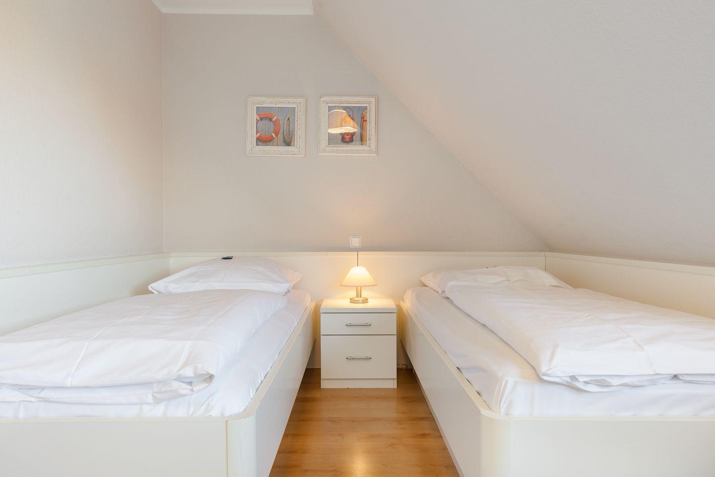 Dachgeschoss: Raum mit 2 getrennten Betten (je 90x180), TV, extra Galerie, ferner separater Raum mit Waschmaschine und Trockner.
